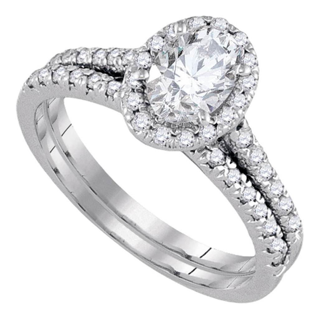 14k White Gold Oval Diamond Bridal Wedding Ring Set 1-1/5 Cttw (Certified)