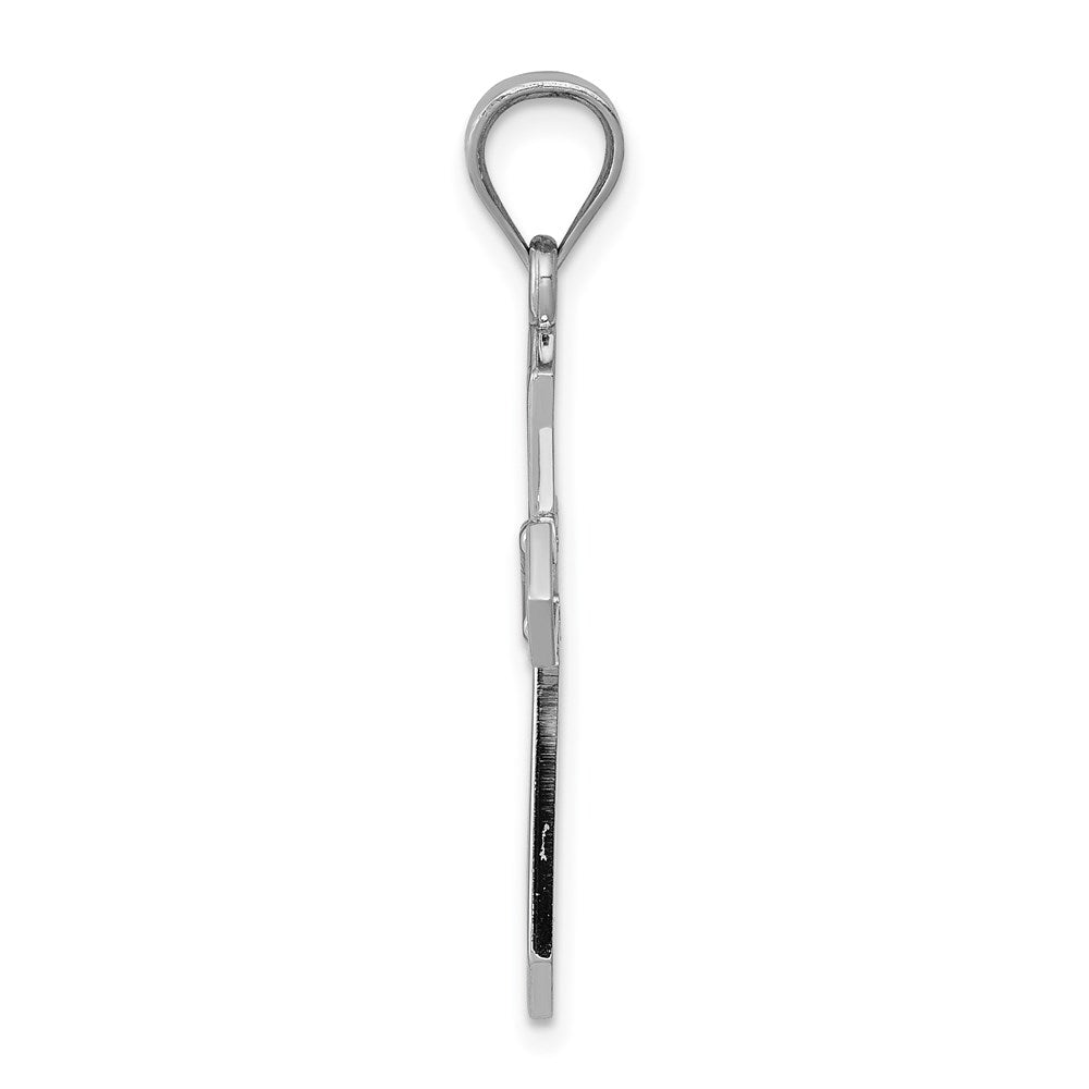 The 14k White Gold Passion Cross Pendant is a solid piece of fine jewelry, designed with a rhodium plating and a pure 14k white gold material. It weighs 1.28 grams...