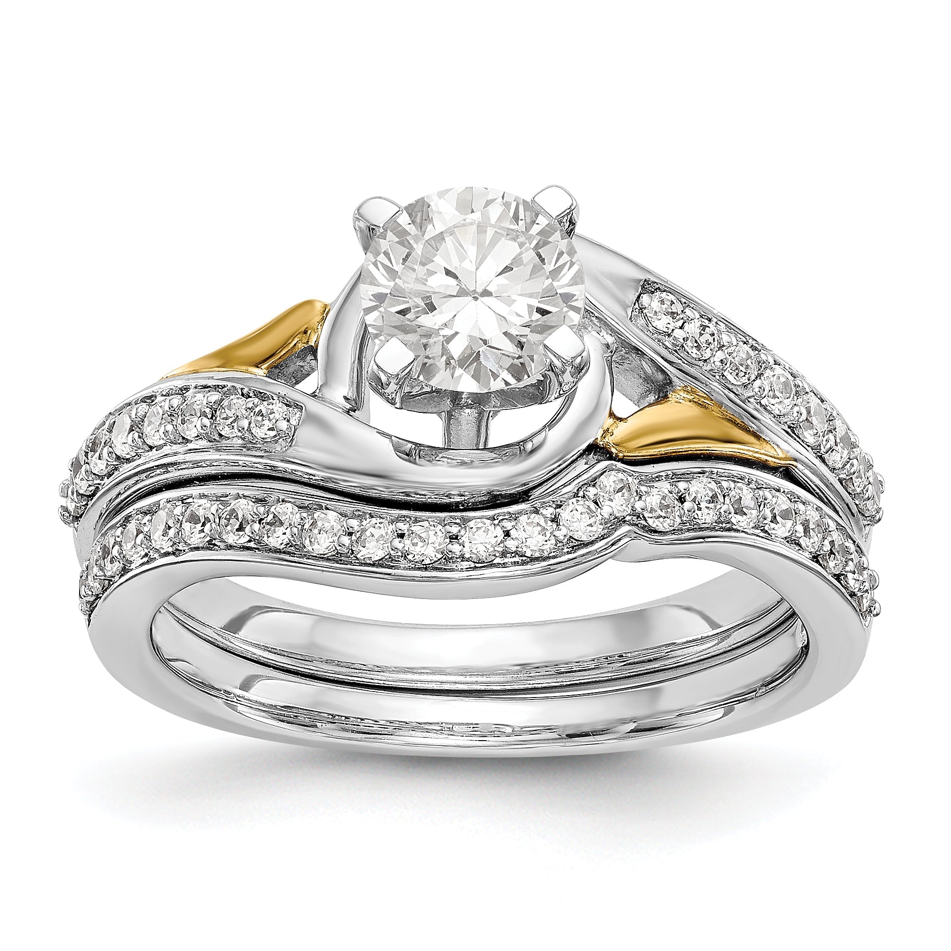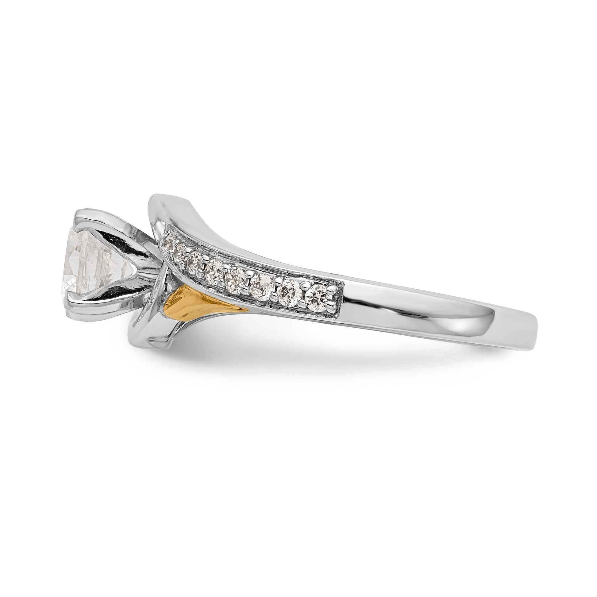 14k White Gold Peg Set Simulated Diamond By Pass Engagement Ring