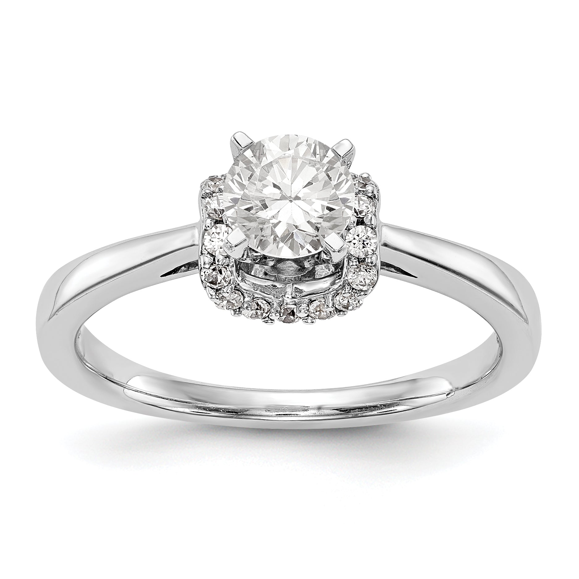 14K White Gold Peg Set Simulated Diamond Engagement Ring