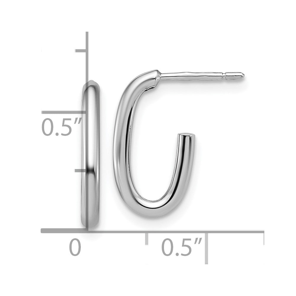 Elevate your style with the 14K White Gold 14K Polished 2.0mm Oval Post J-Hoop Earrings. These sleek earrings feature a lightweight design, ideal for everyday wear, and are crafted from pure 14K white gold with a brilliant polish finish. The 16mm oval shape adds a subtle touch of elegance, perfect for complementing any outfit. Their durable rhodium plating resists tarnish, and the secure post with push back ensures comfort and easy wear. Crafted to last, these J-Hoop Earrings come with a lifetime guarantee, making them a versatile addition to your jewelry collection.