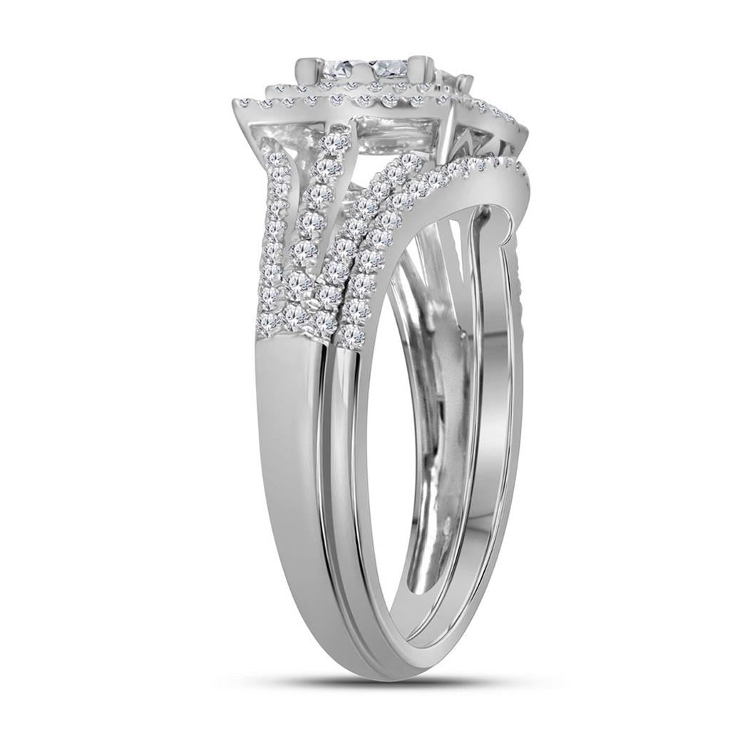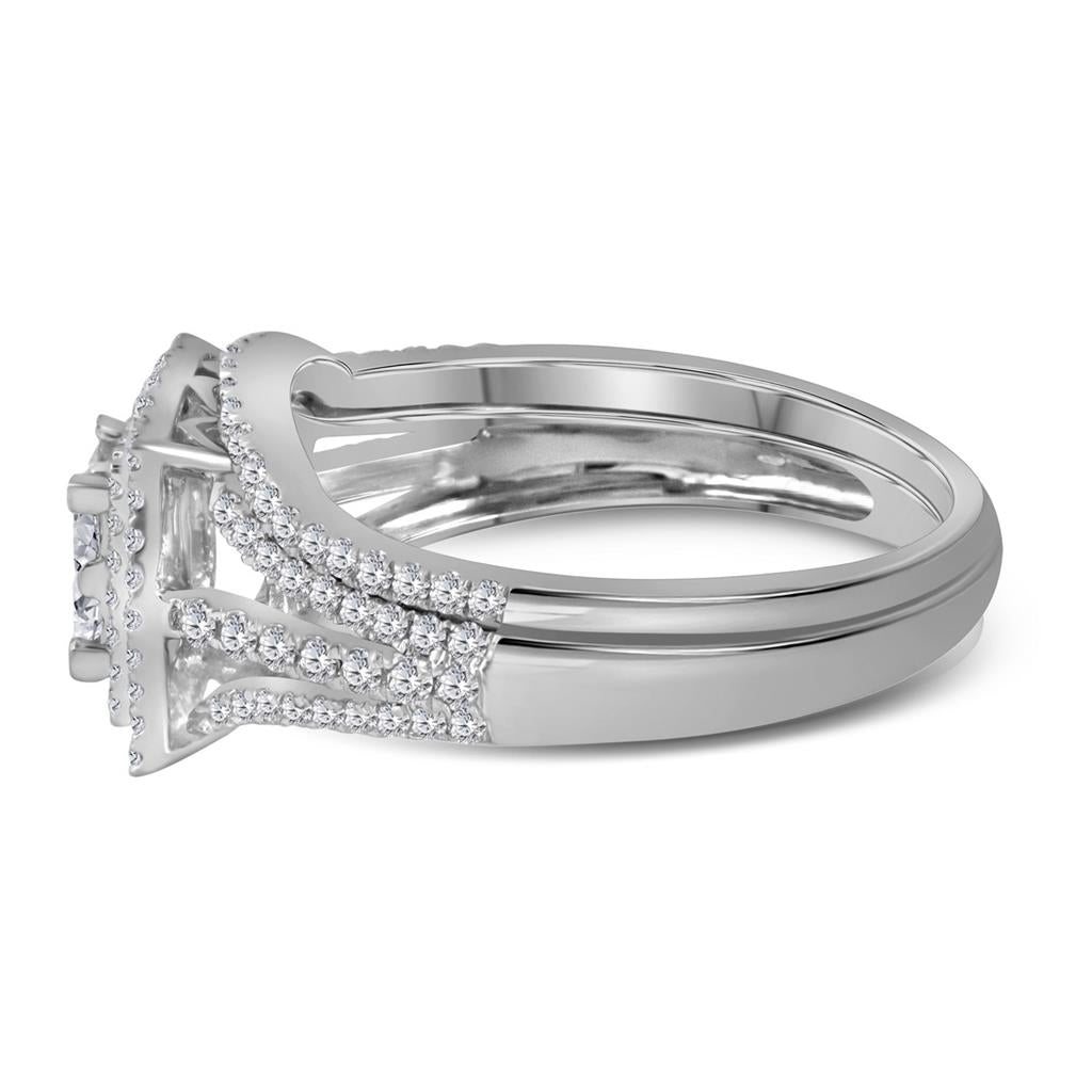 14k White Gold Princess Diamond Bridal Wedding Ring Set 1 Cttw