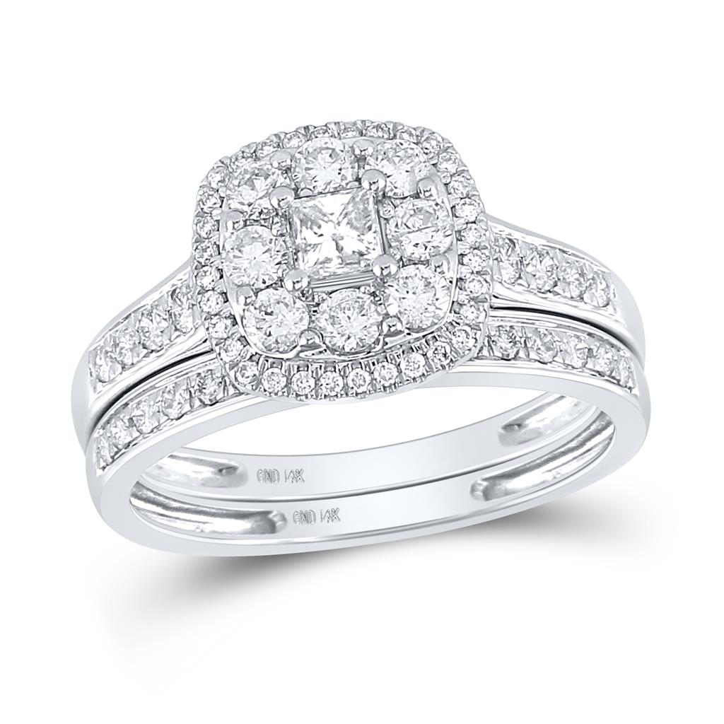 14k White Gold Princess Diamond Bridal Wedding Ring Set 1 Cttw (Certified)