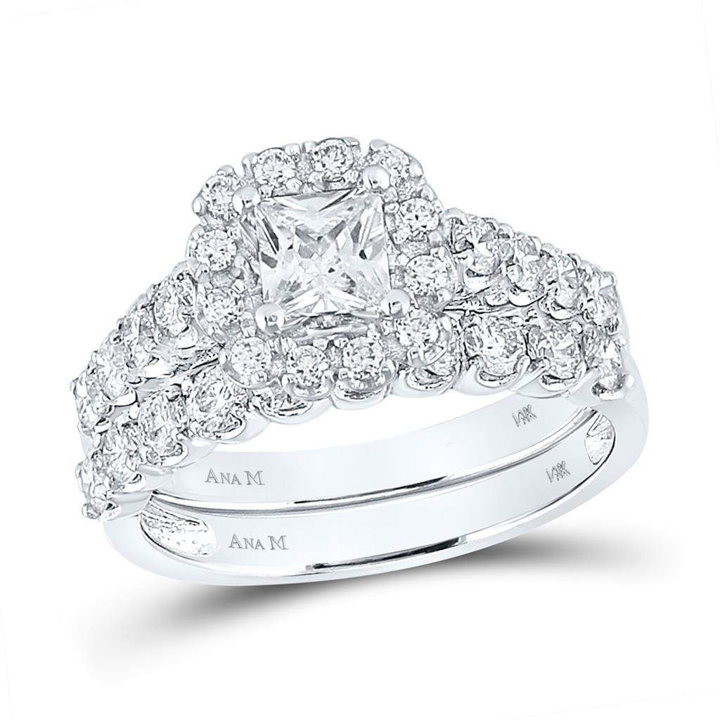 14k White Gold Princess Diamond Bridal Wedding Ring Set 2 Cttw (Certified)