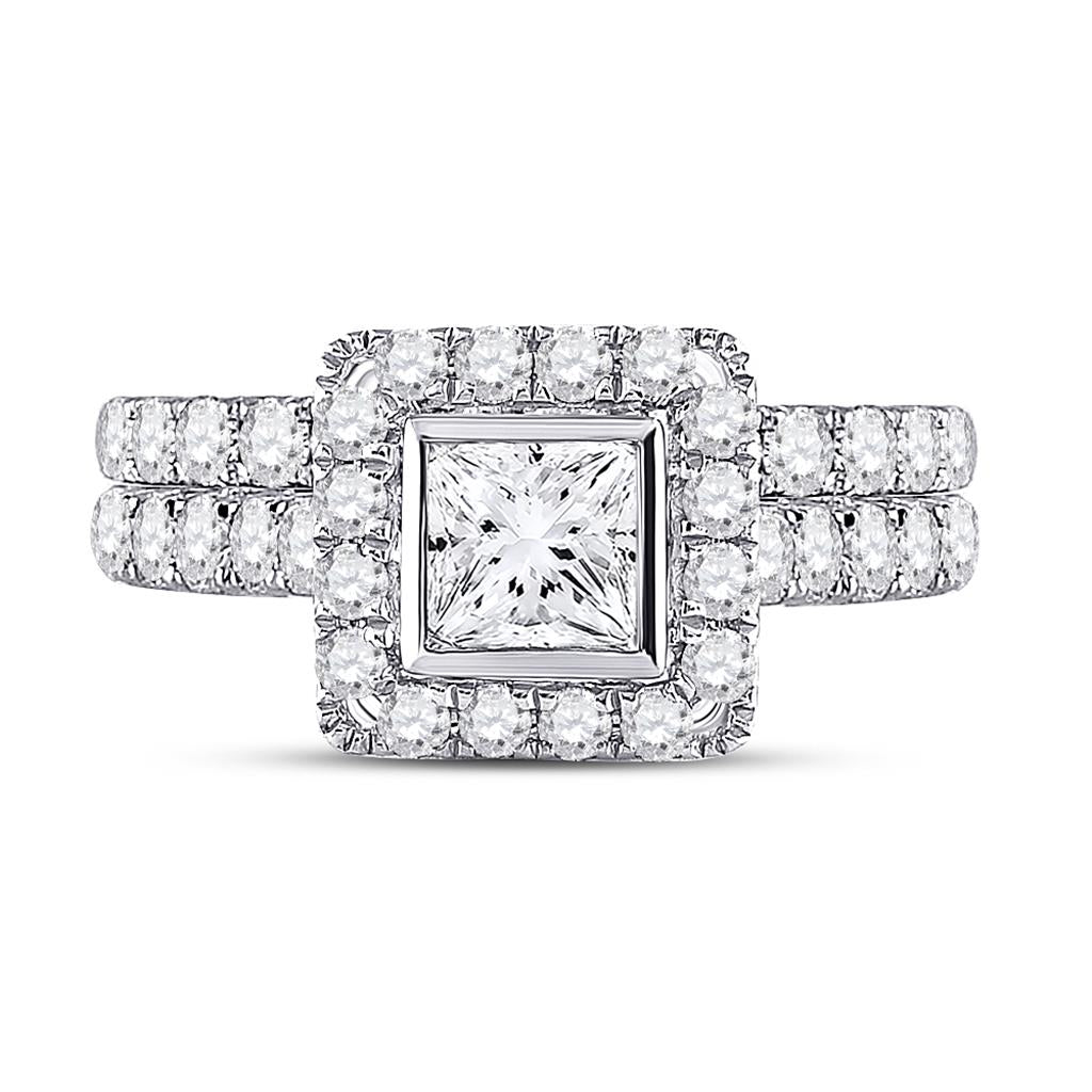 14k White Gold Princess Diamond Bridal Wedding Ring Set 2 Cttw (Certified)