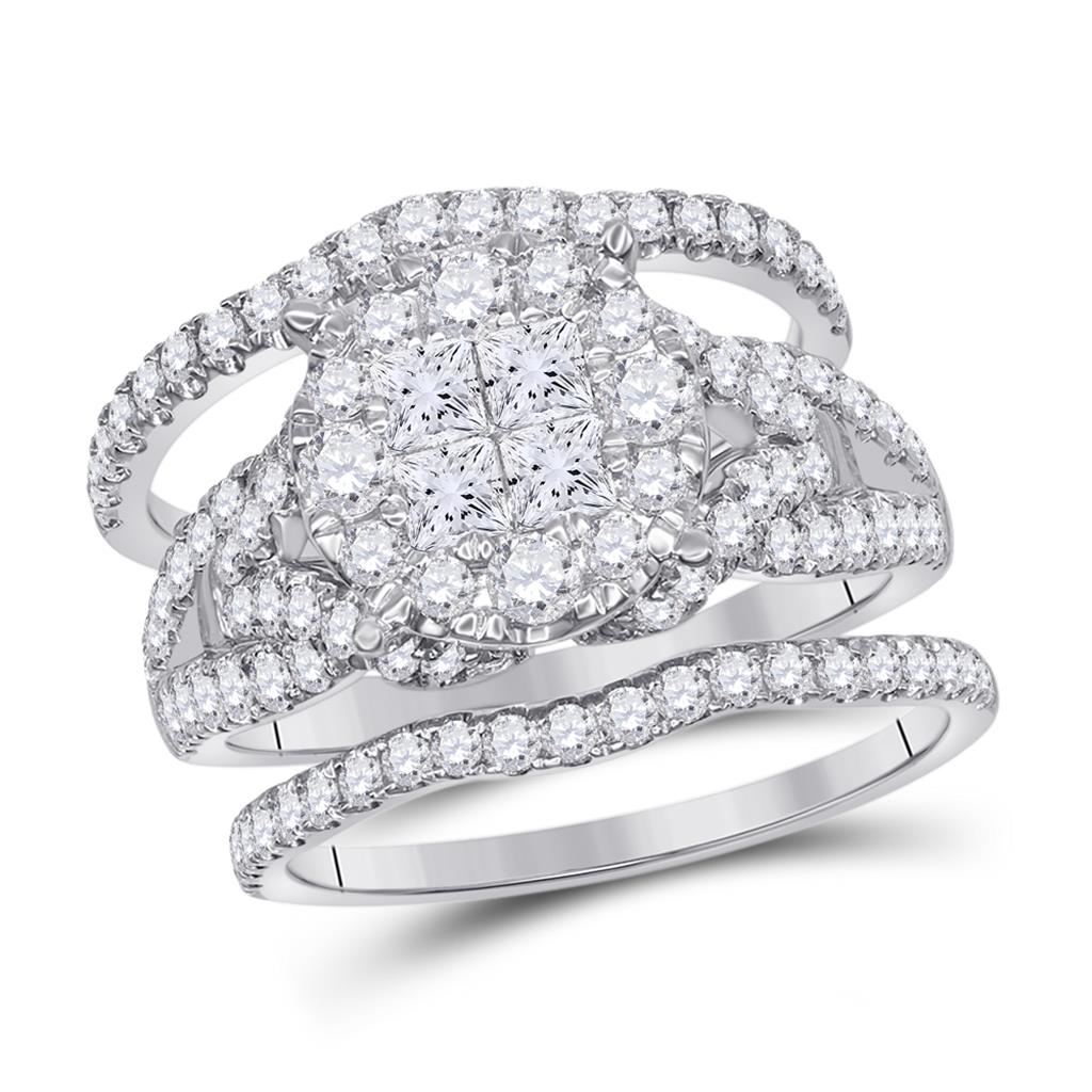 14k White Gold Princess Diamond Bridal Wedding Ring Set 2 Cttw