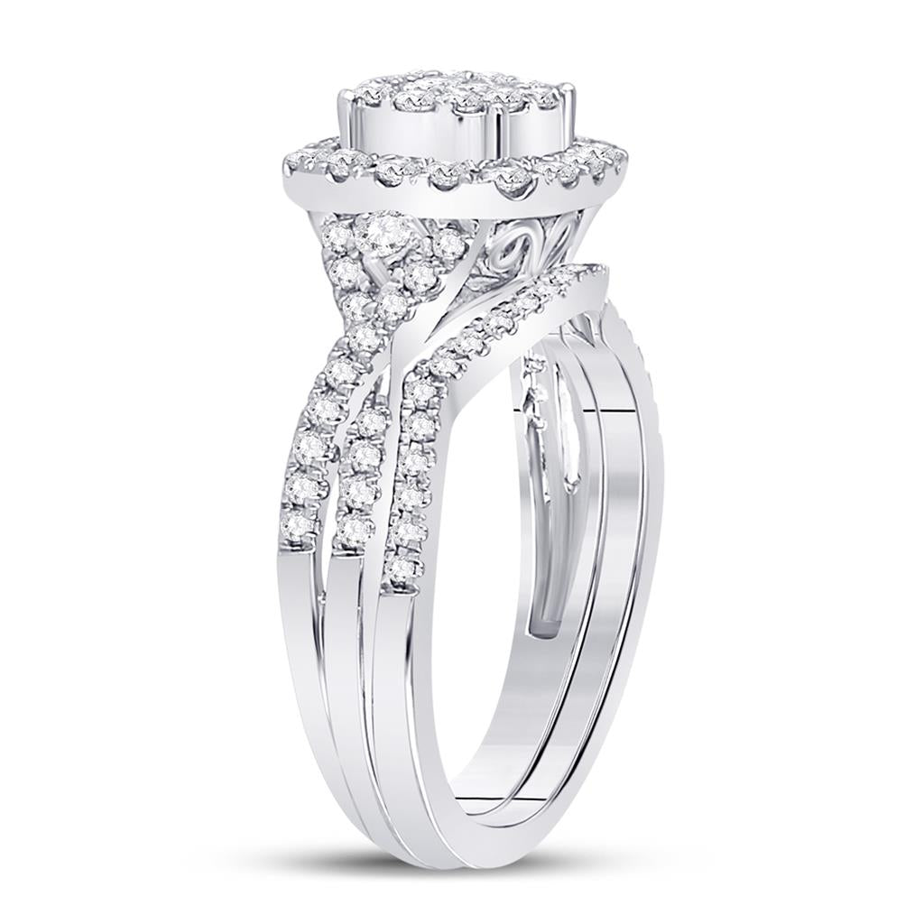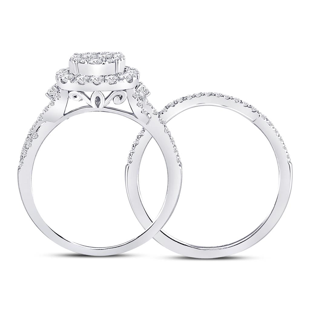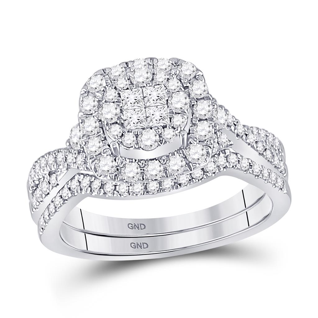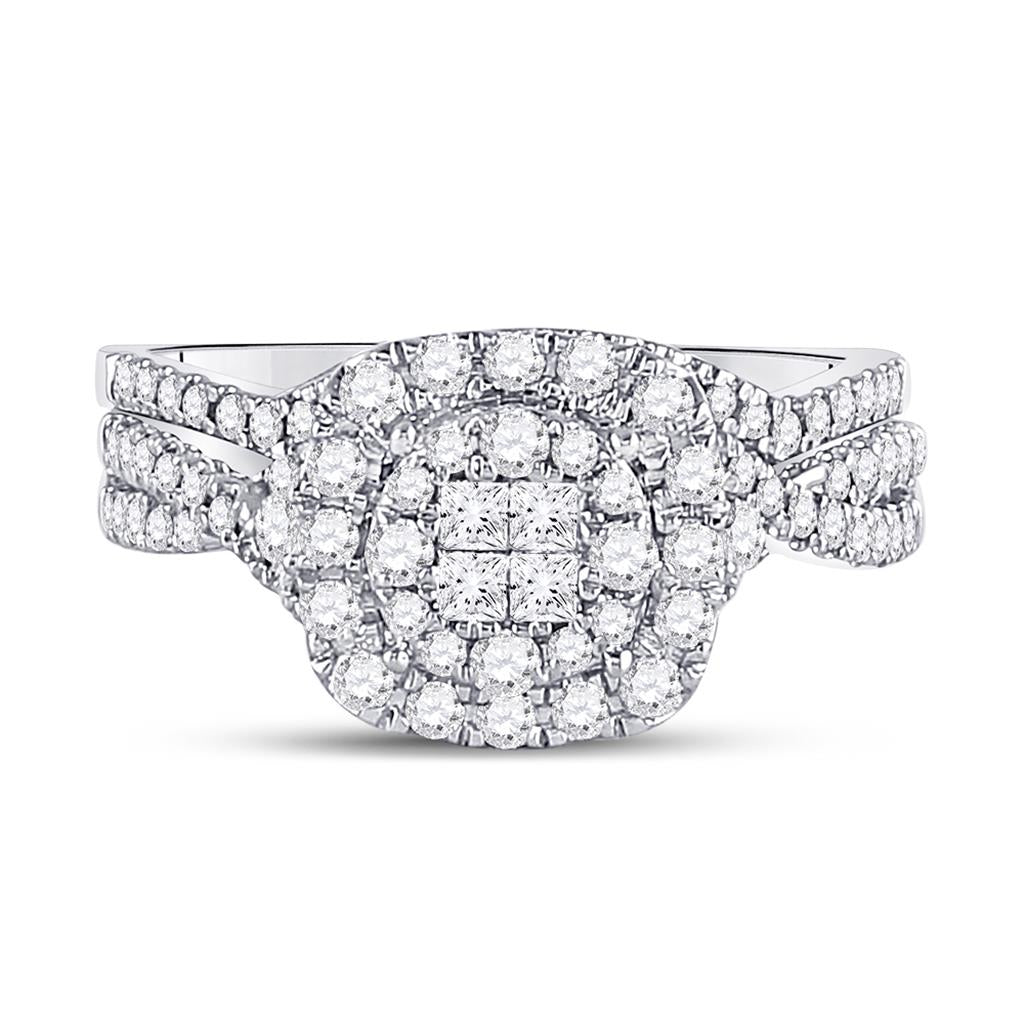 14k White Gold Princess Diamond Bridal Wedding Ring Set 3/4 Cttw
