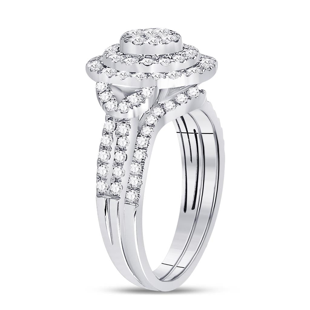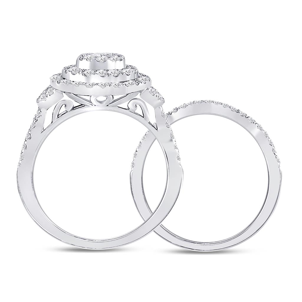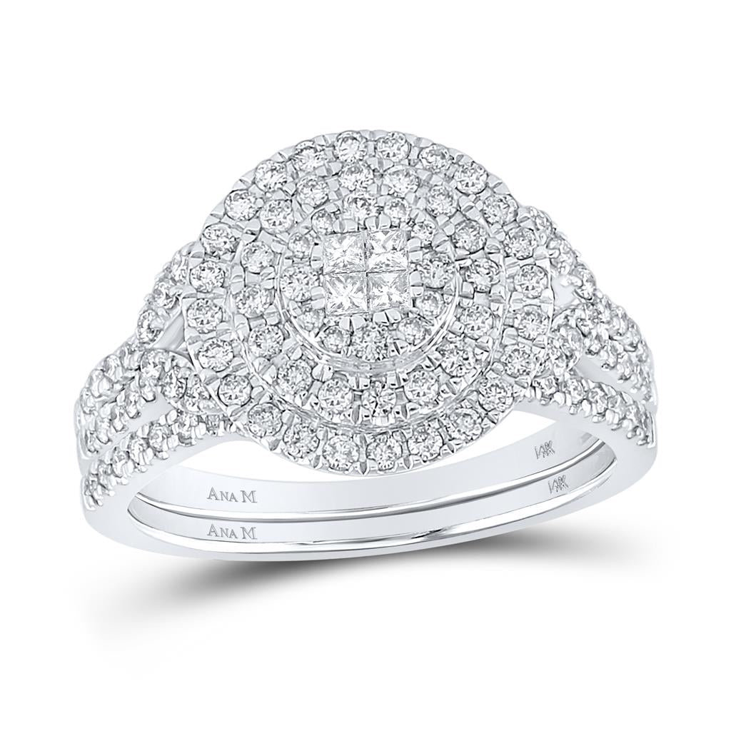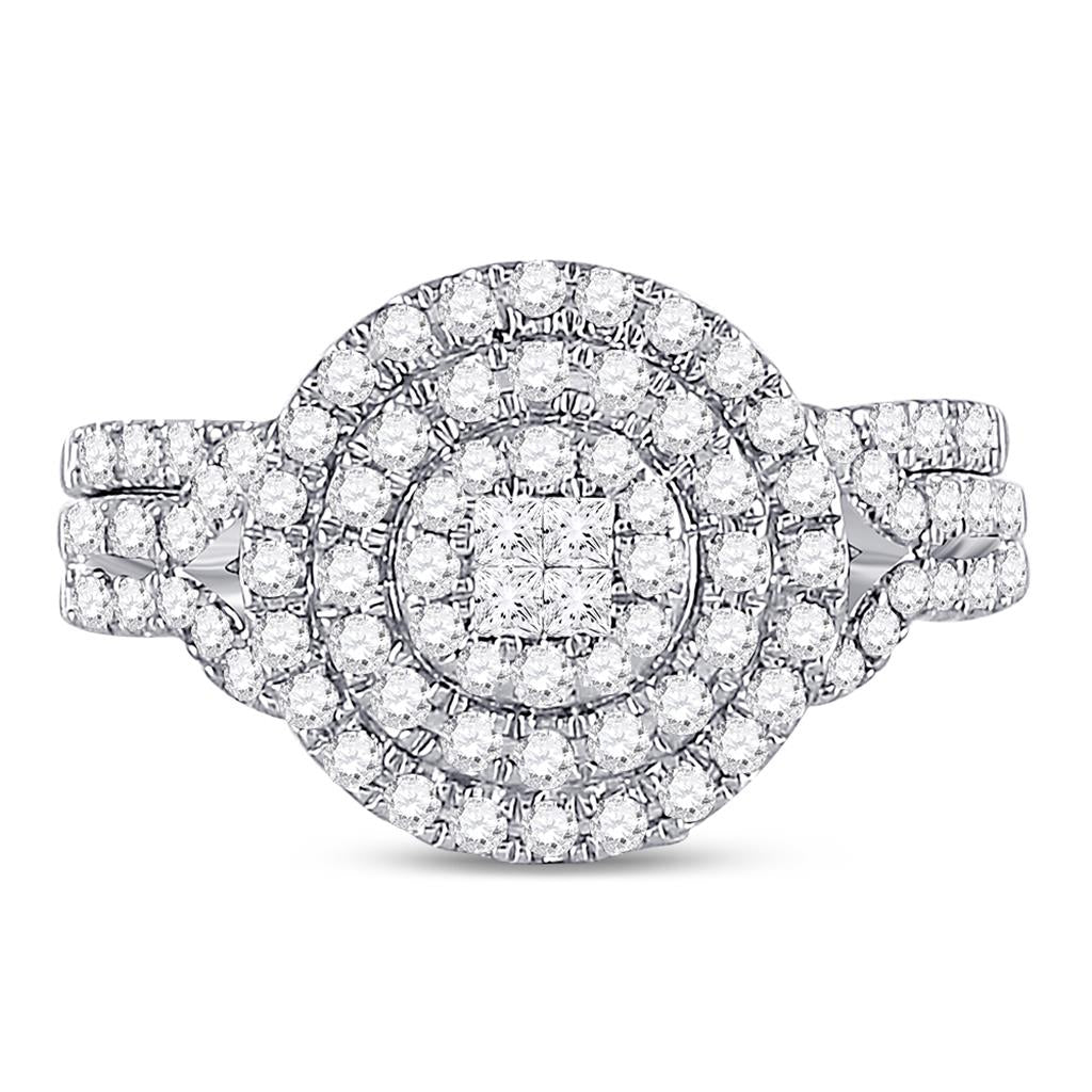 14k White Gold Princess Diamond Bridal Wedding Ring Set 3/4 Cttw