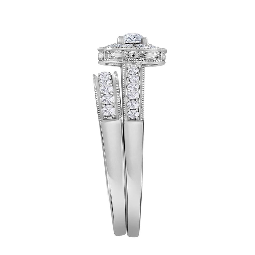 14k White Gold Princess Diamond Bridal Wedding Ring Set 3/4 Cttw