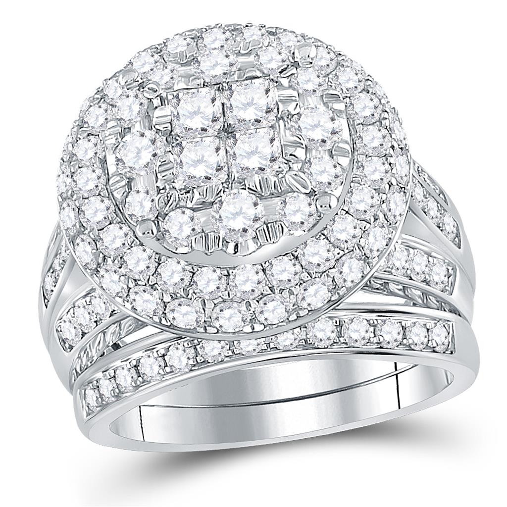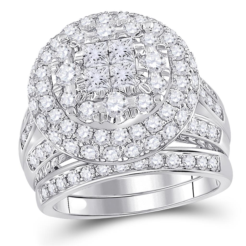 14k White Gold Princess Diamond Bridal Wedding Ring Set 3 Cttw