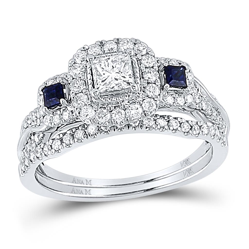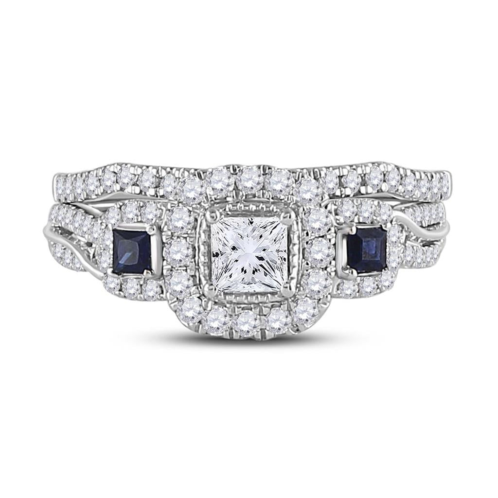 14k White Gold Princess Diamond Bridal Wedding Ring Set 7/8 Cttw