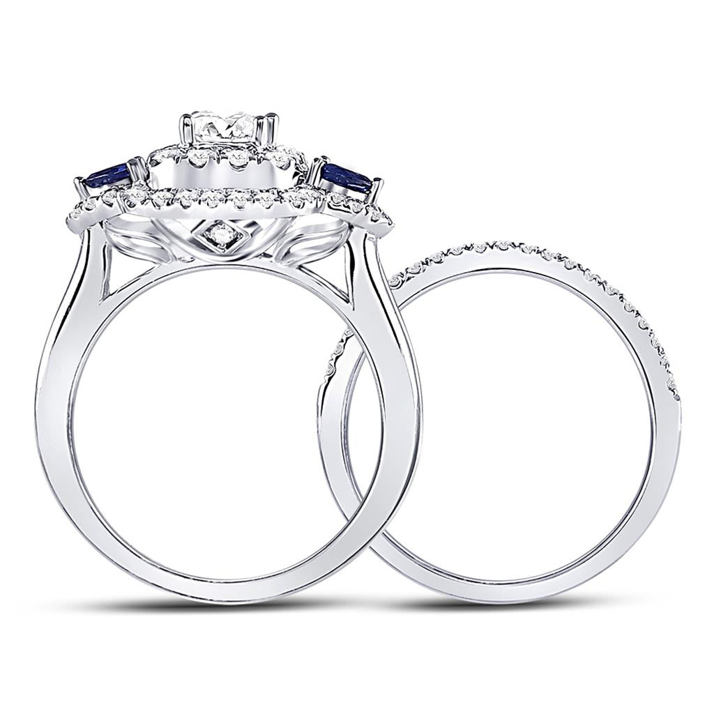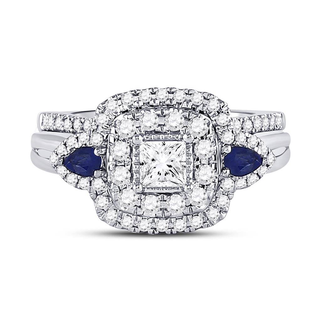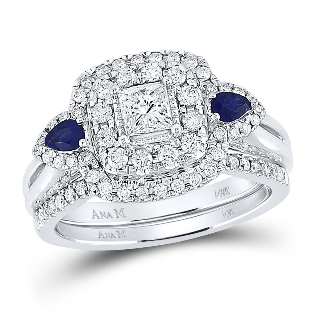 14k White Gold Princess Diamond Bridal Wedding Ring Set 7/8 Cttw (Certified)