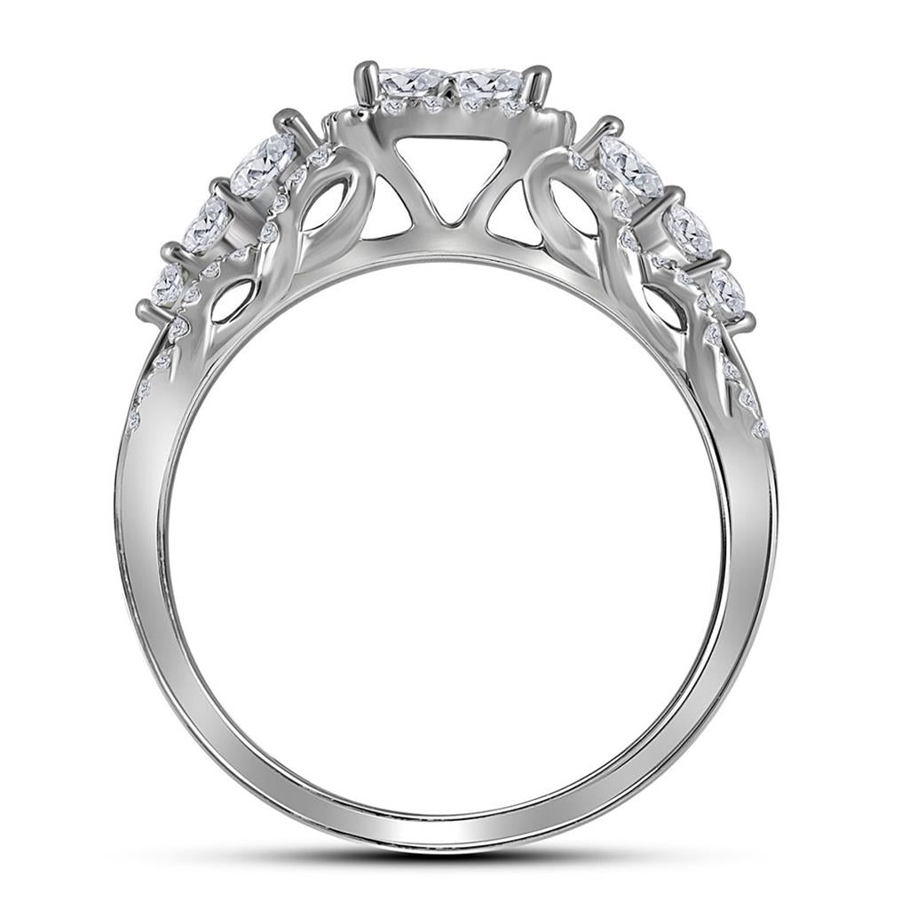 14k White Gold Princess Diamond Cluster Bridal Wedding Ring Set 1 Cttw