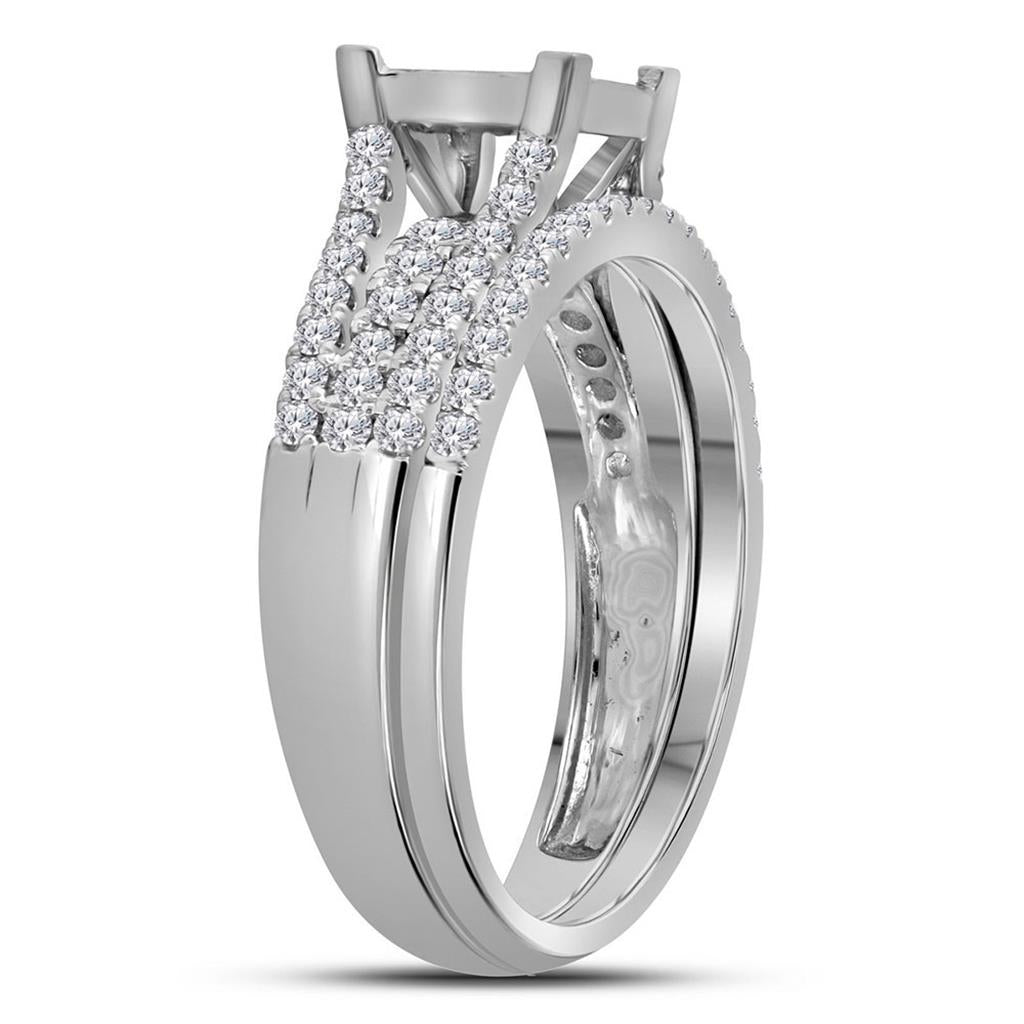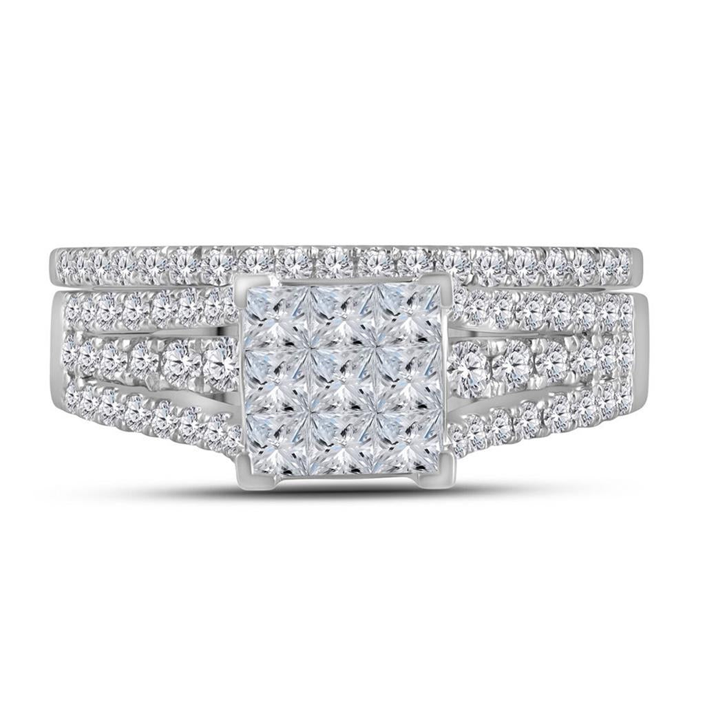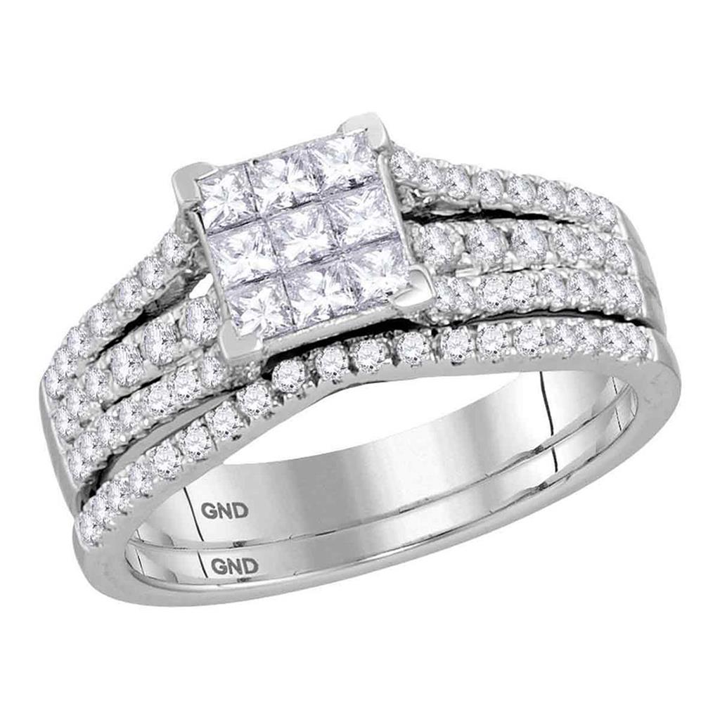 14k White Gold Princess Diamond Cluster Bridal Wedding Ring Set 1 Cttw