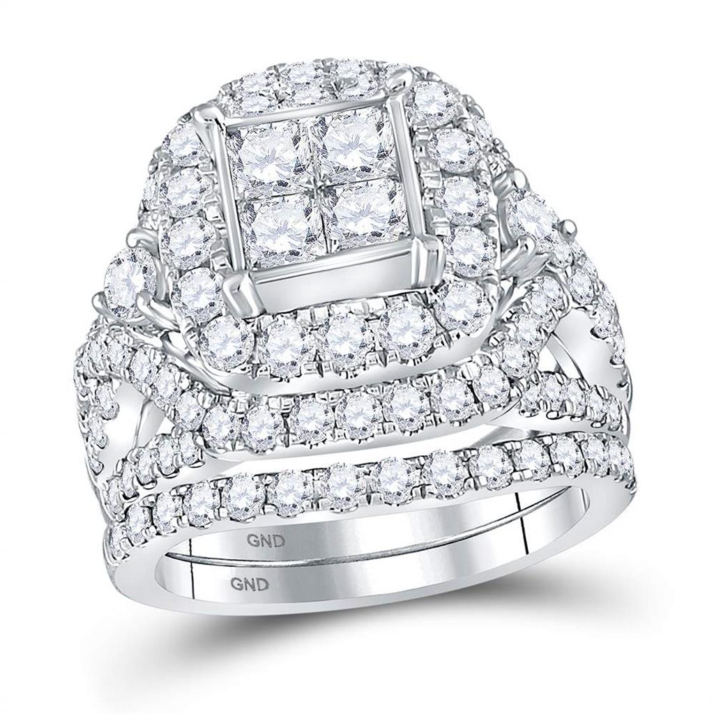 14k White Gold Princess Diamond Cluster Bridal Wedding Ring Set 3-1/3 Cttw