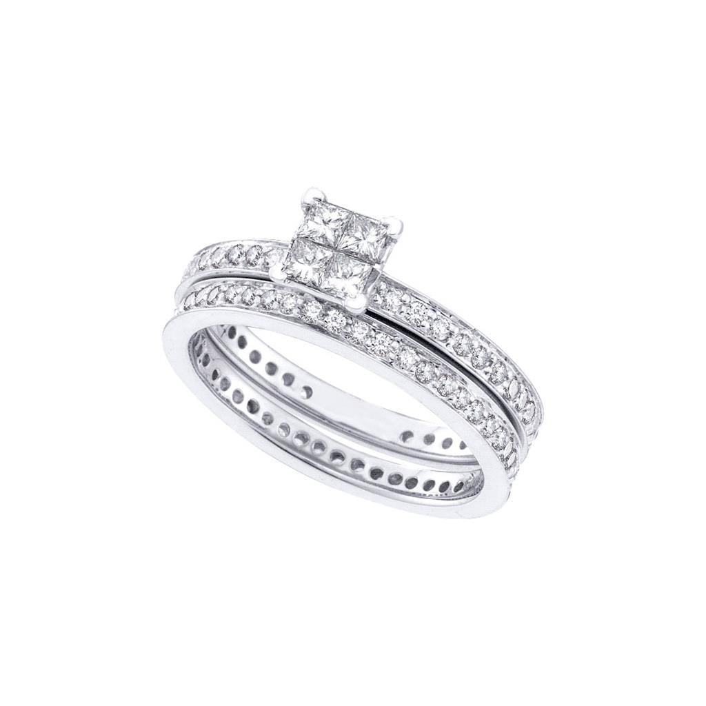 14k White Gold Princess Diamond Eternity Bridal Wedding Ring Set 1 Cttw