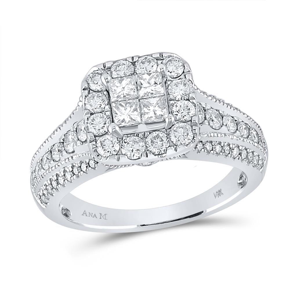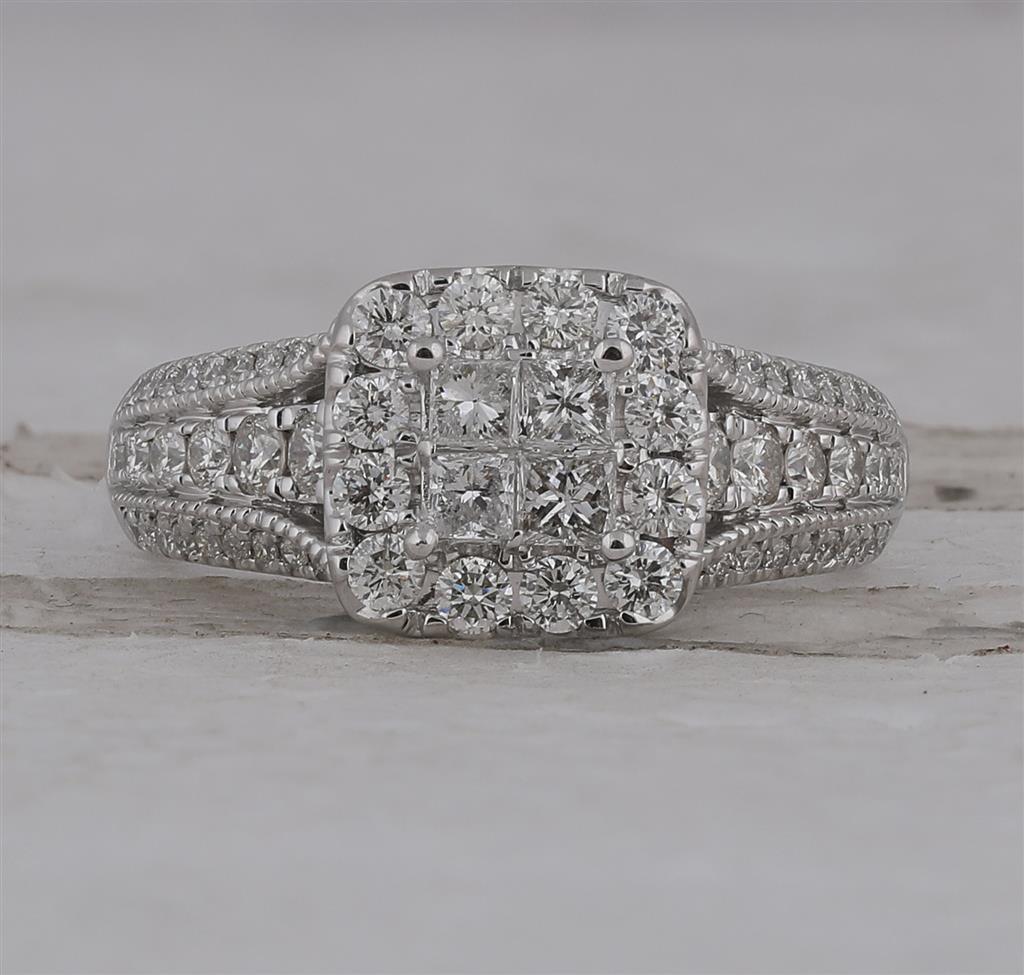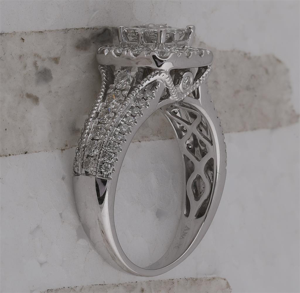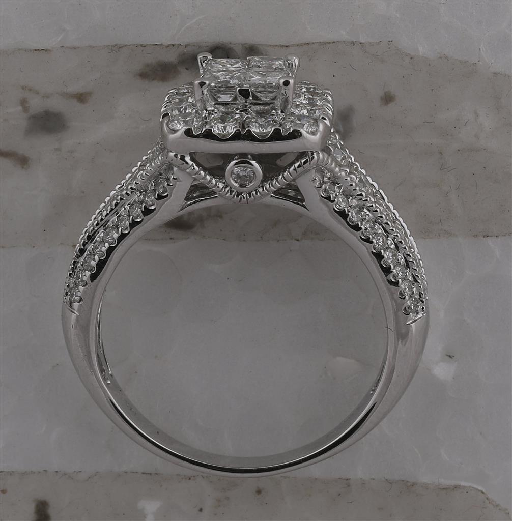 14k White Gold Princess Diamond Halo Bridal Engagement Ring 1-1/3 Cttw