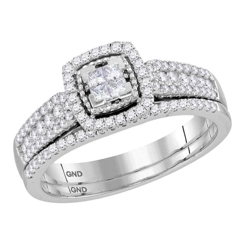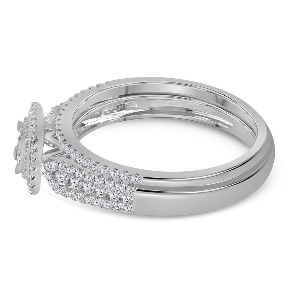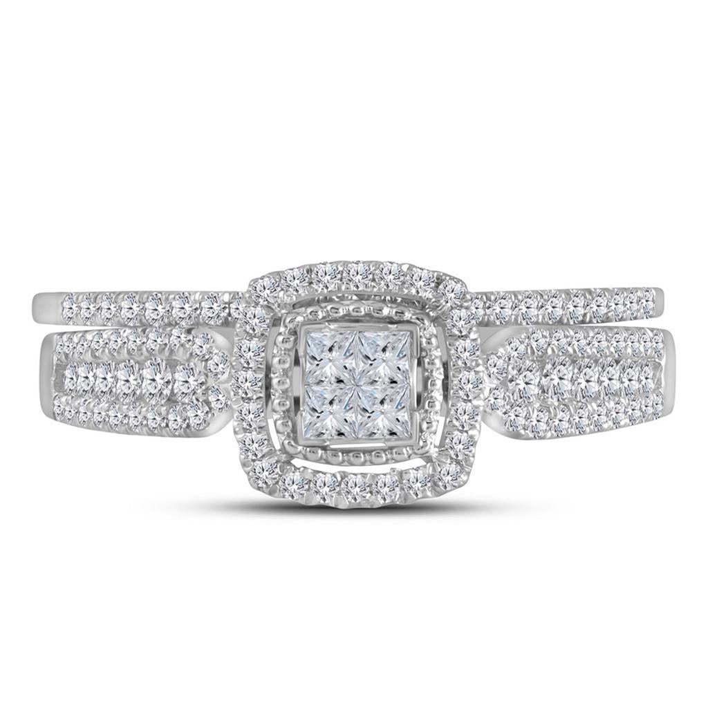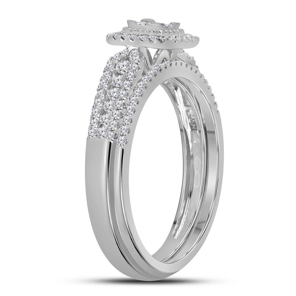 14k White Gold Princess Diamond Halo Bridal Wedding Ring Set 1/2 Cttw