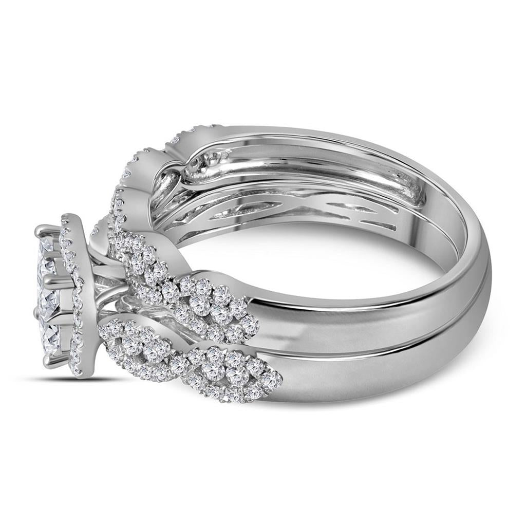 14k White Gold Princess Diamond Halo Bridal Wedding Ring Set 1 Cttw