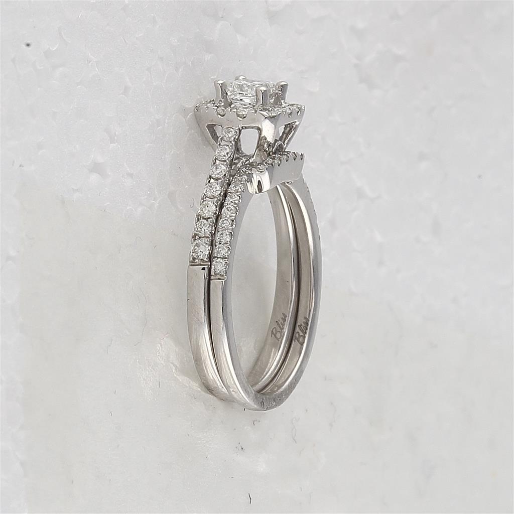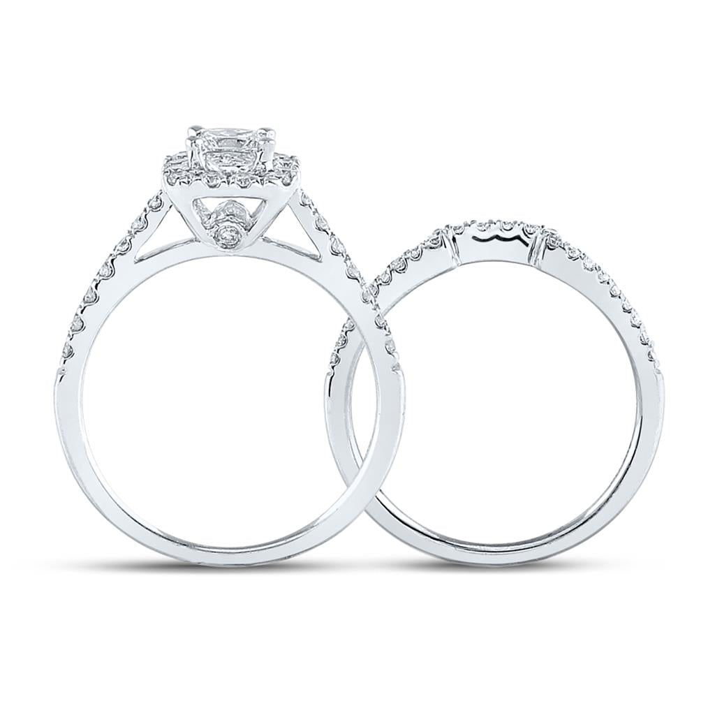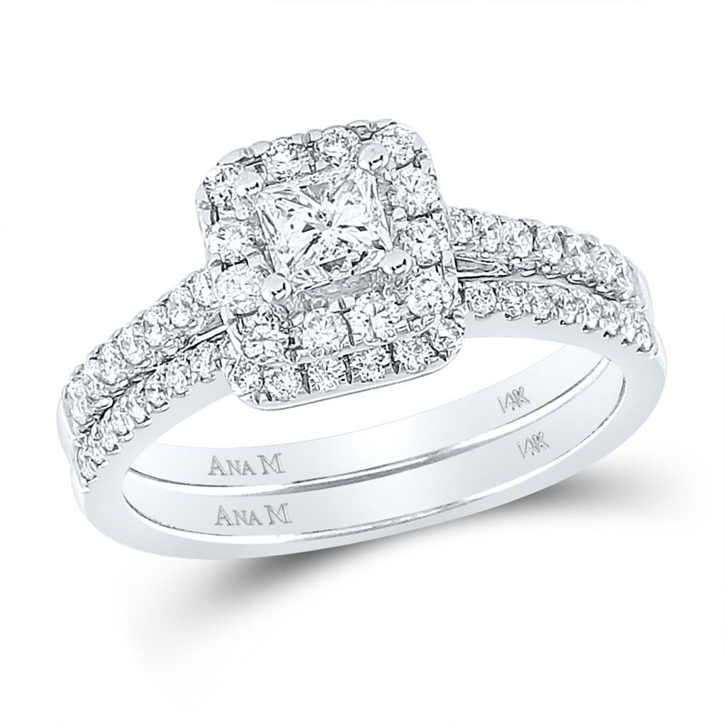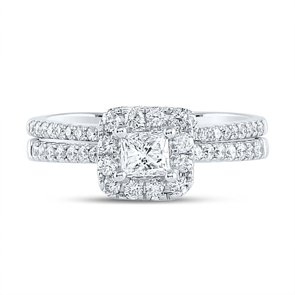 14k White Gold Princess Diamond Halo Bridal Wedding Ring Set 1 Cttw