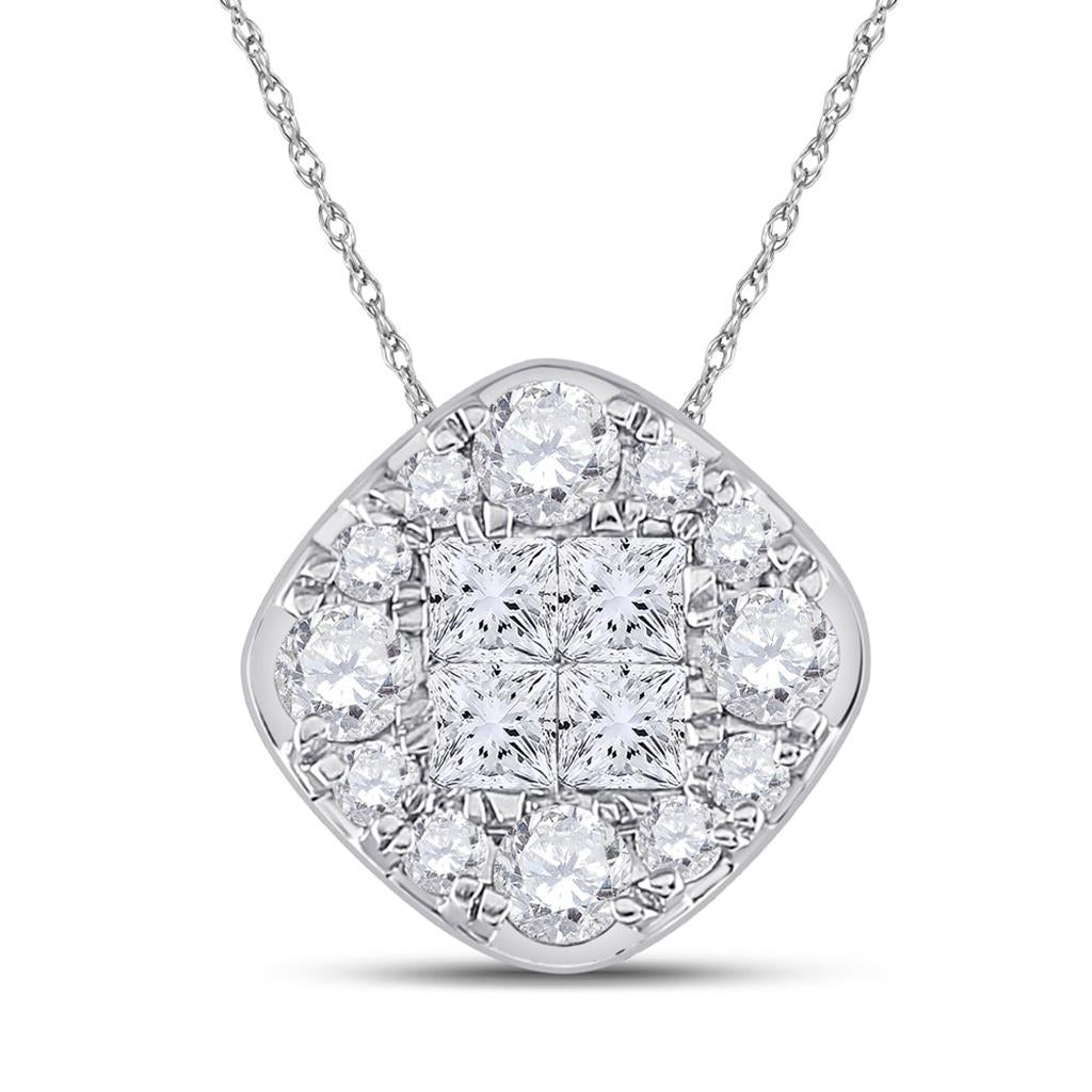 14k White Gold Princess Diamond Offset Square Cluster Pendant 1 Cttw