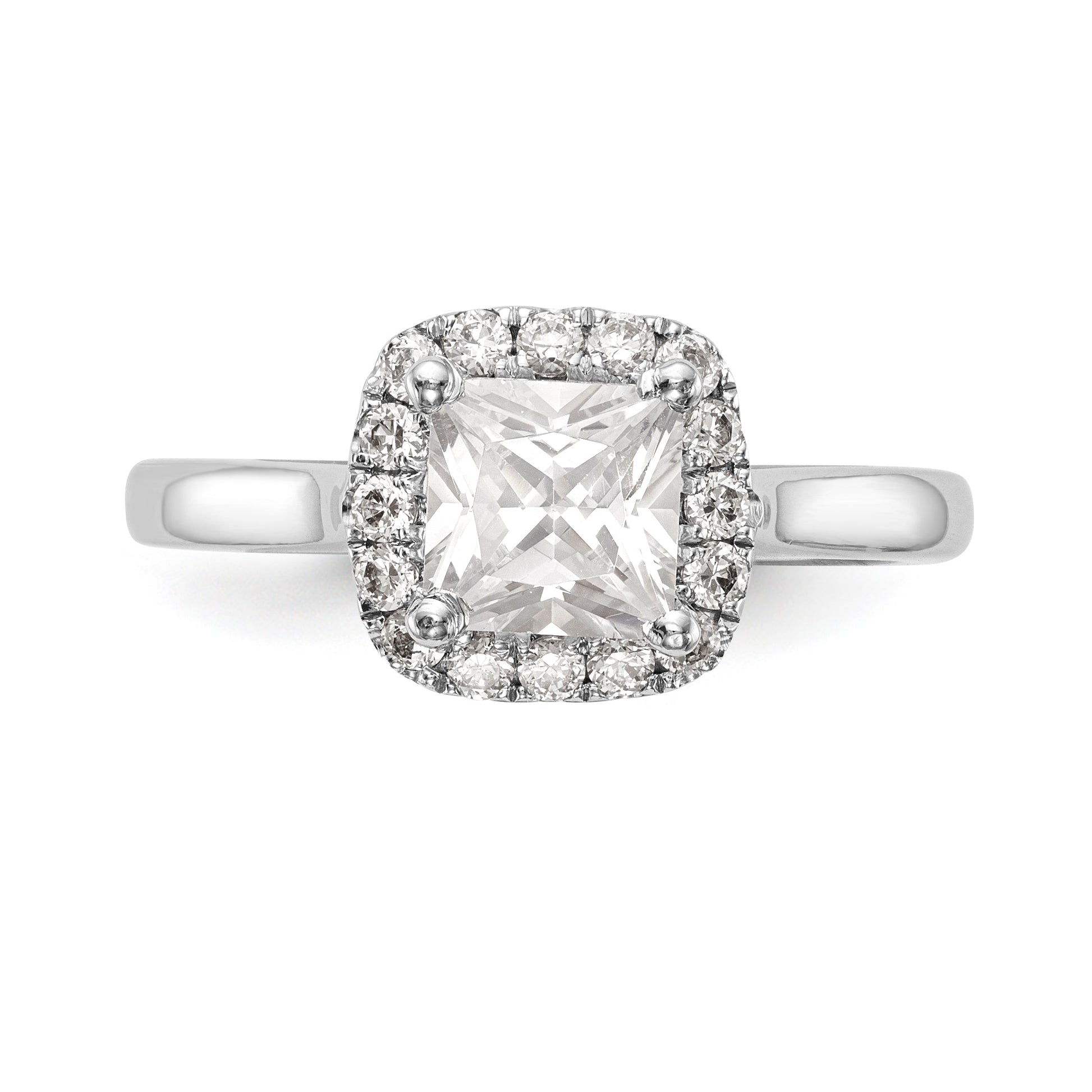 14K White Gold Princess Simulated Diamond Cushion Halo Engagement Ring