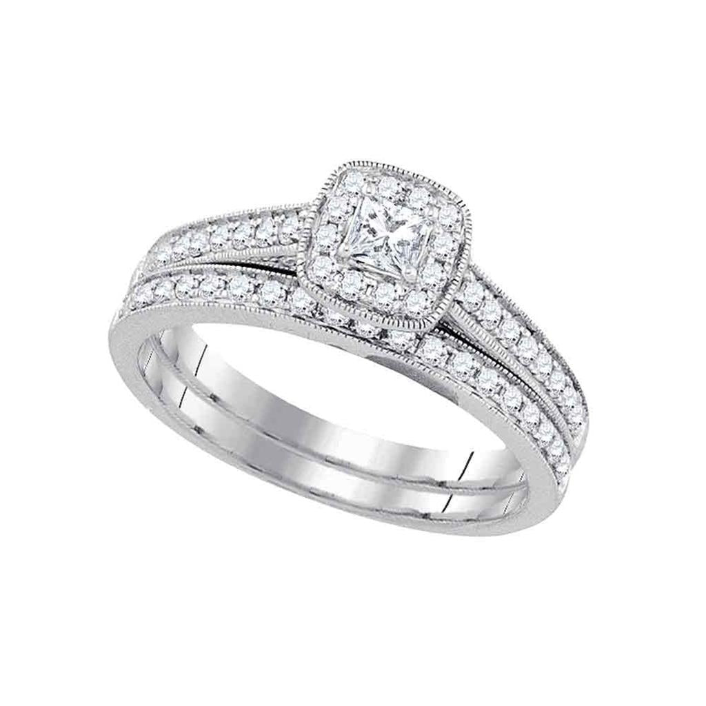 14k White Gold Princess Diamond Wedding Bridal Ring Set 1/2 Cttw