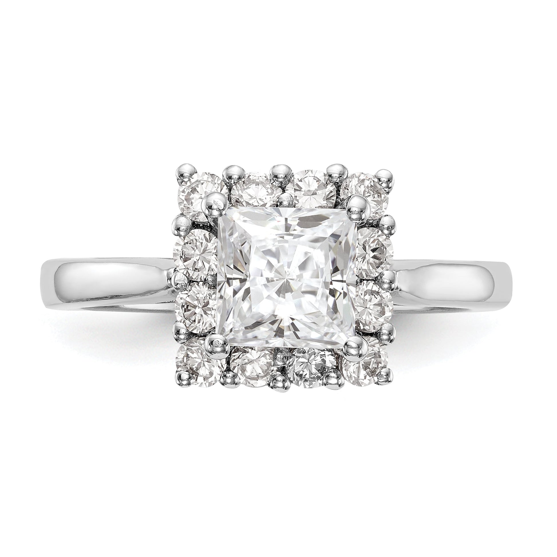 14k White Gold Princess Halo Engagement Simulated Diamond Ring
