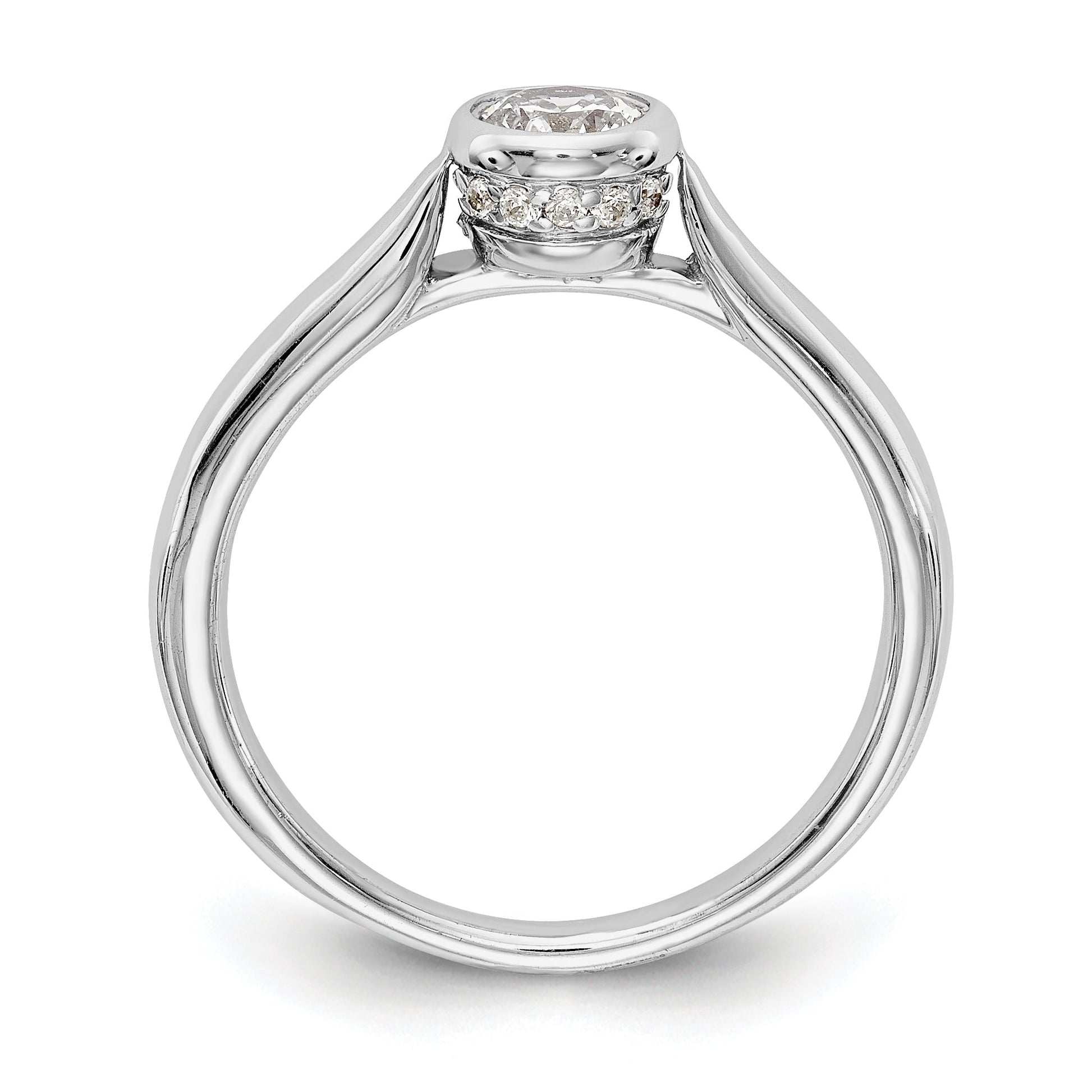 This simulated diamond engagement ring is manufactured from 3.06 grams of solid and real 14K white gold, not plated, not filled. We can manufacture this ring with genuine diamonds too. Please contact us for pricing.
