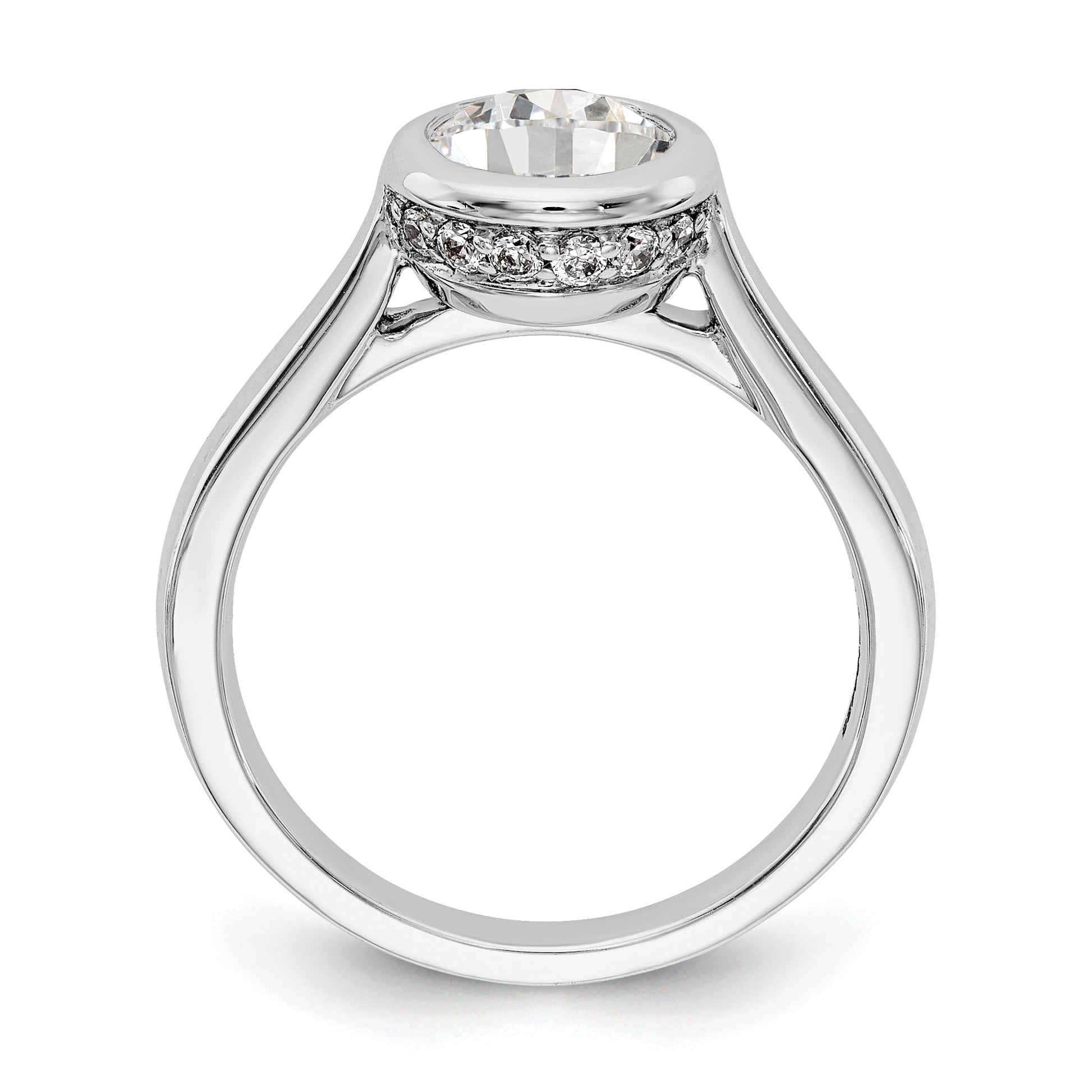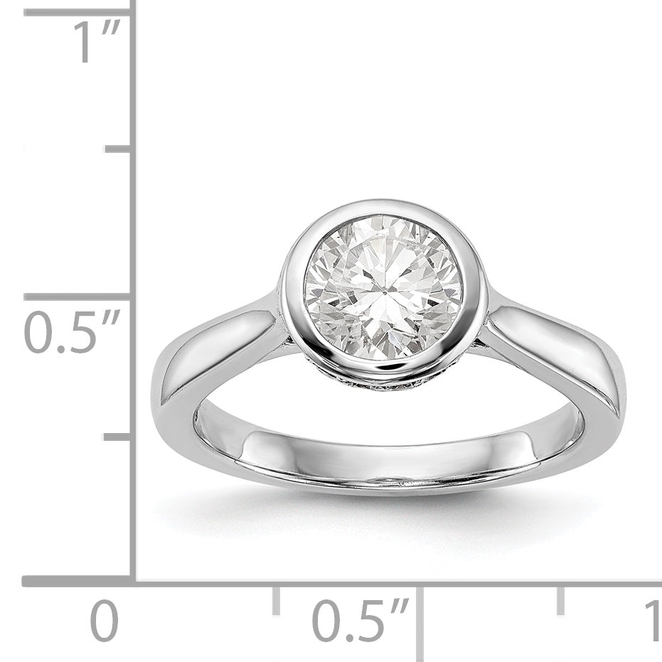 14k White Gold Round Bezel Set Simulated Diamond Engagement Ring