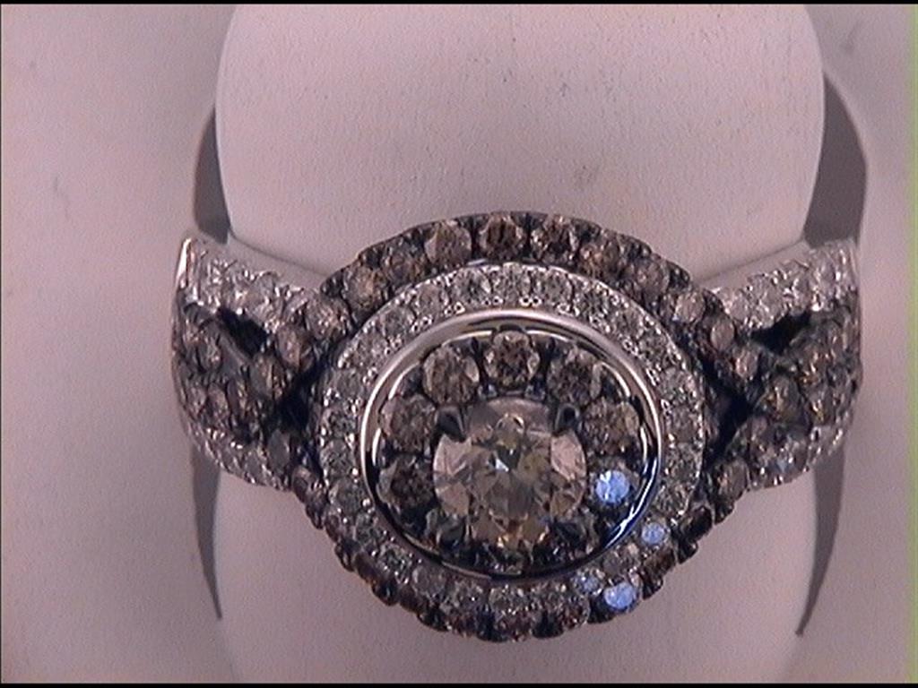 14k White Gold Round Brown Diamond Halo Bridal Engagement Ring 2 Cttw