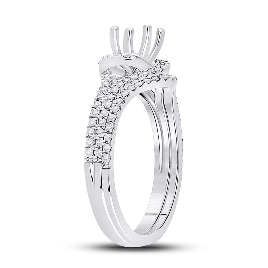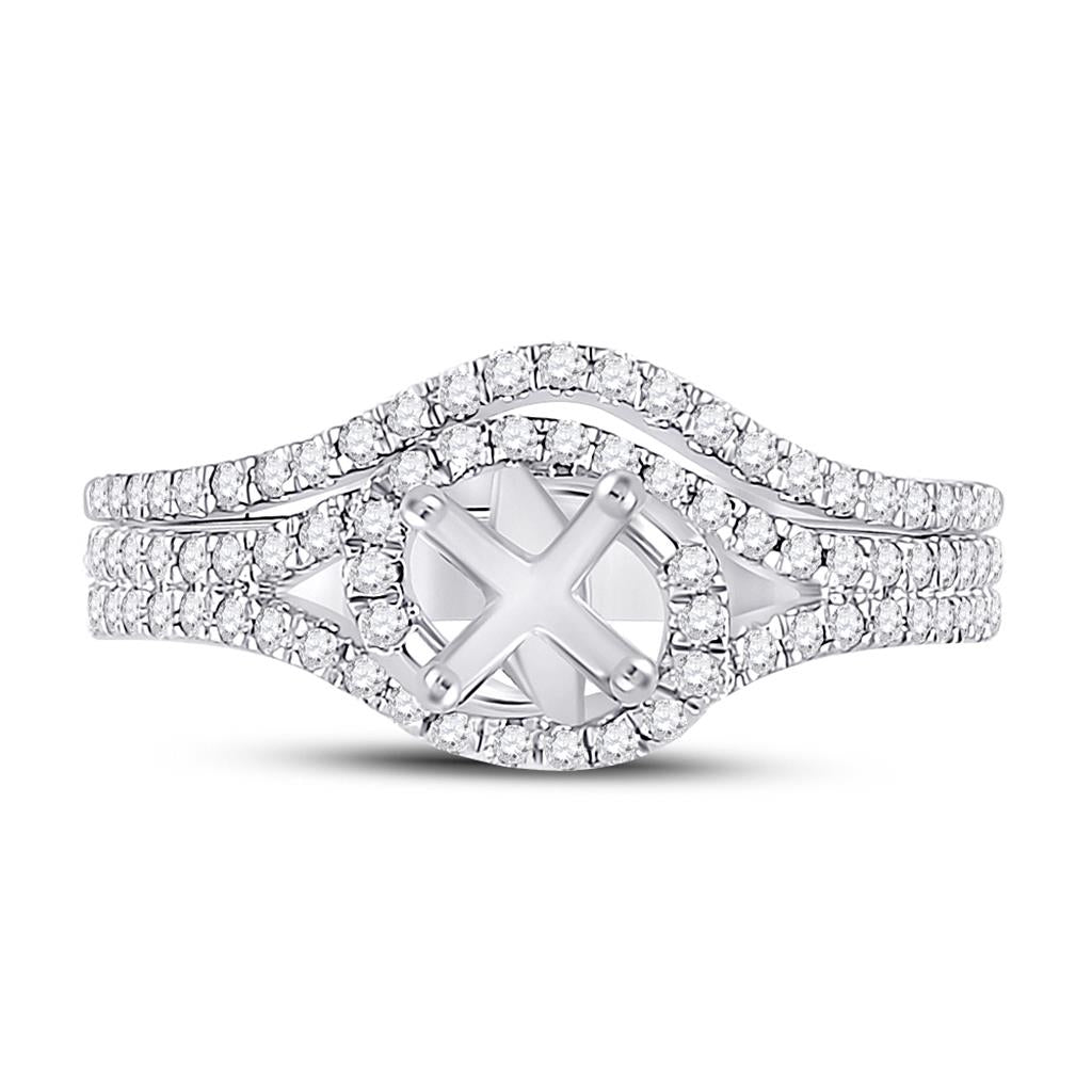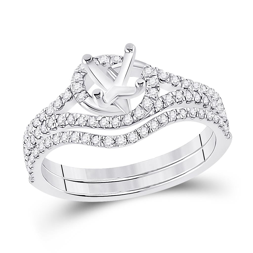14k White Gold Round Diamond 1 Ct Rd Center Halo Bridal Semi-Mount Set 3/8 Ctw