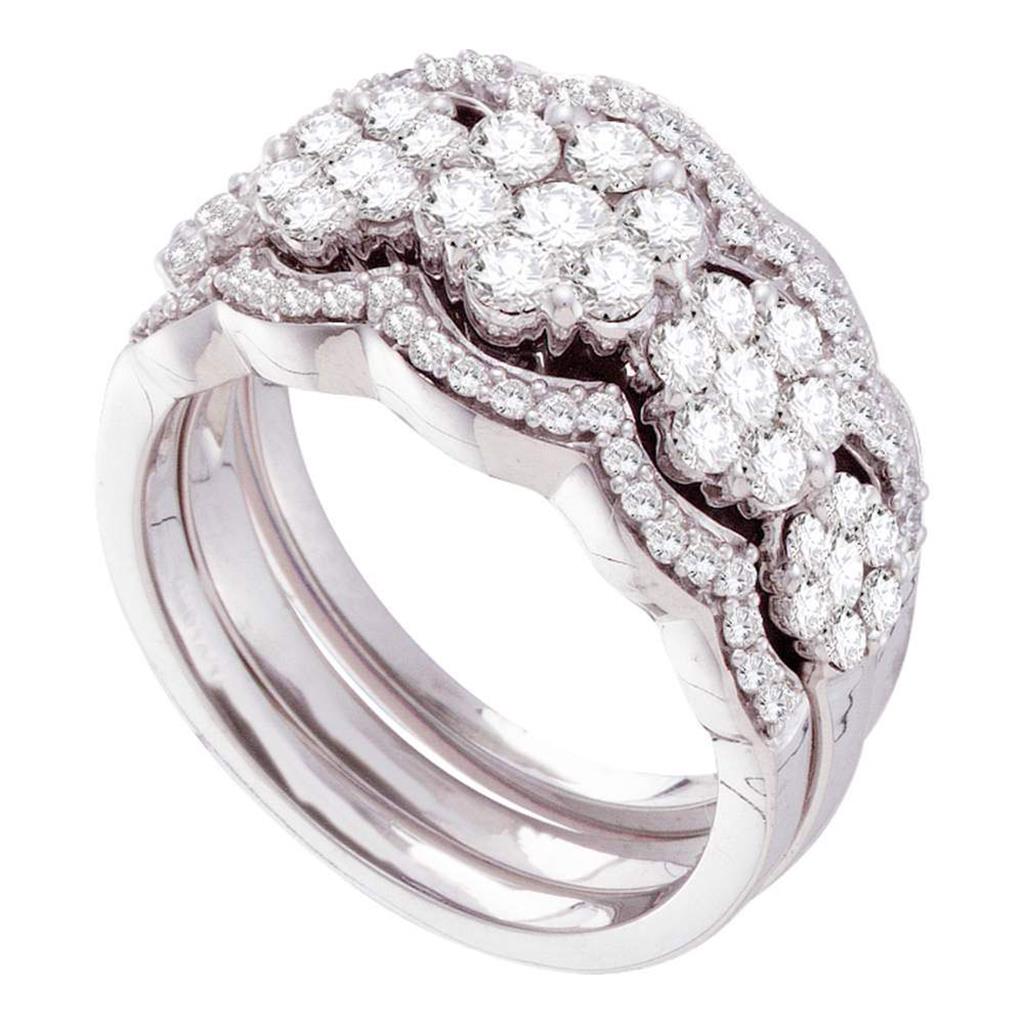 14k White Gold Round Diamond 3-Piece Bridal Wedding Ring Set 1-1/2 Cttw