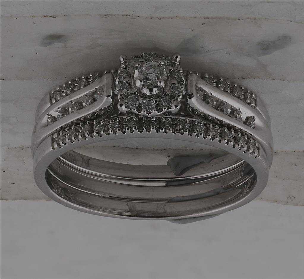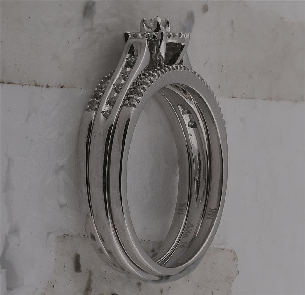 14k White Gold Round Diamond 3-Piece Bridal Wedding Ring Set 1/4 Cttw