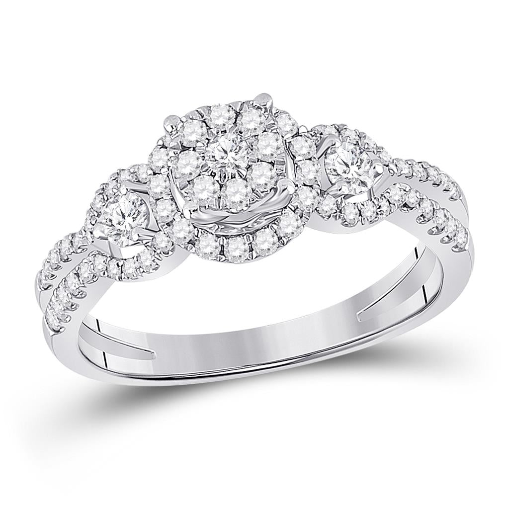 14k White Gold Round Diamond 3-stone Bridal Engagement Ring 5/8 Cttw