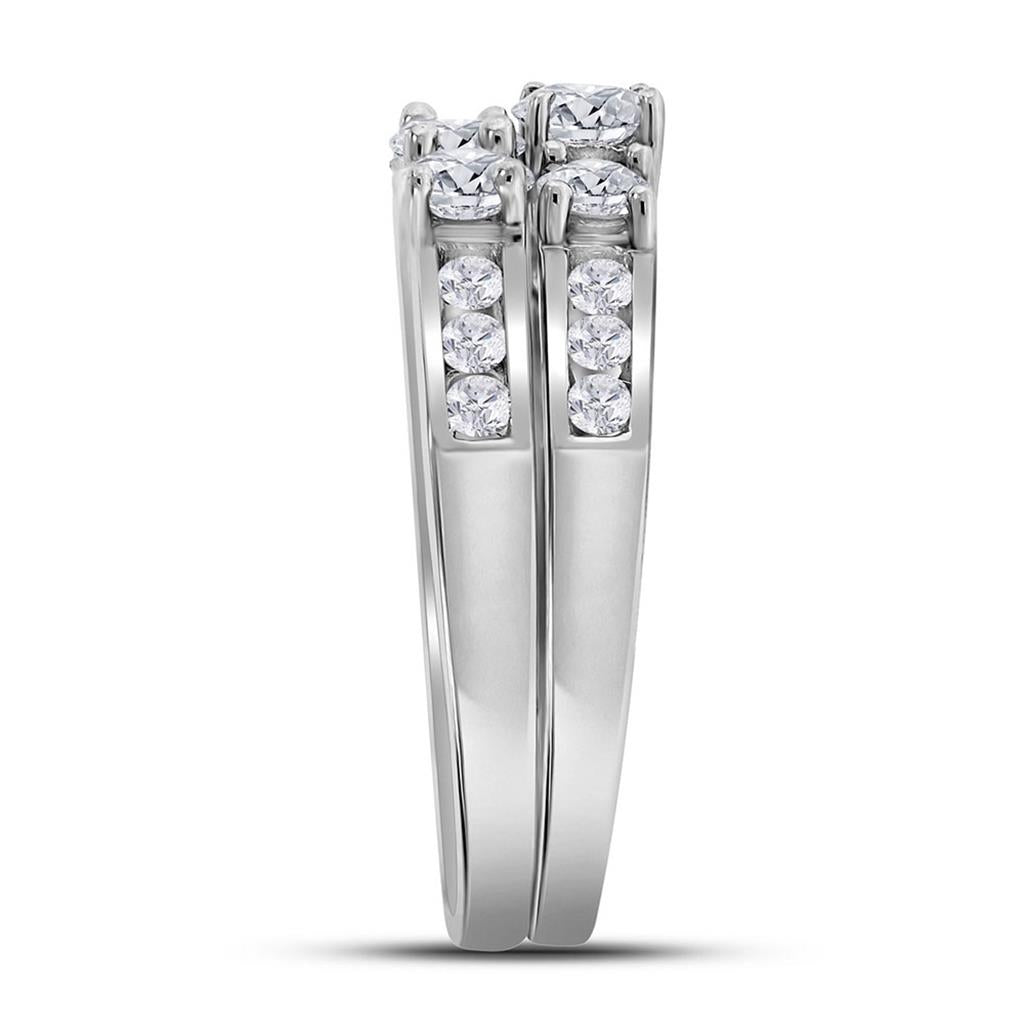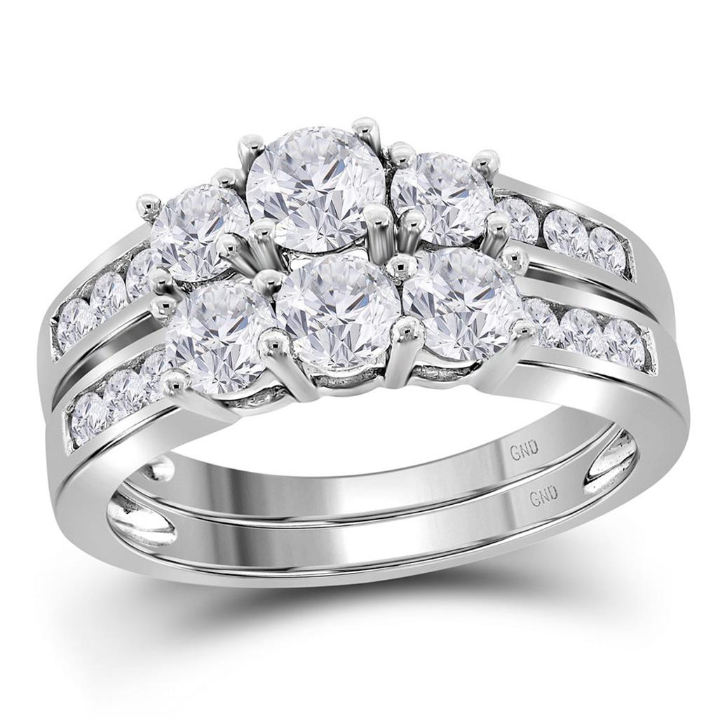 14k White Gold Round Diamond 3-Stone Bridal Wedding Ring Set 1-1/2 Cttw