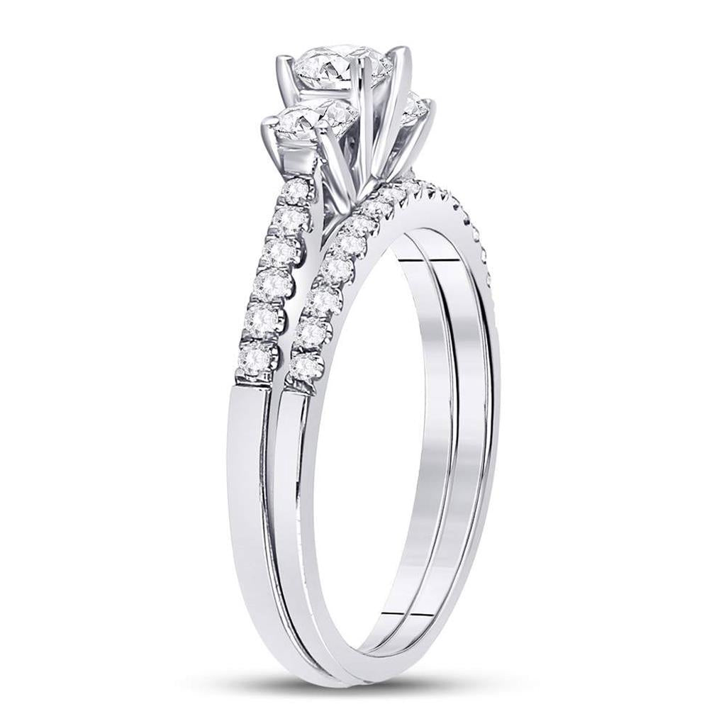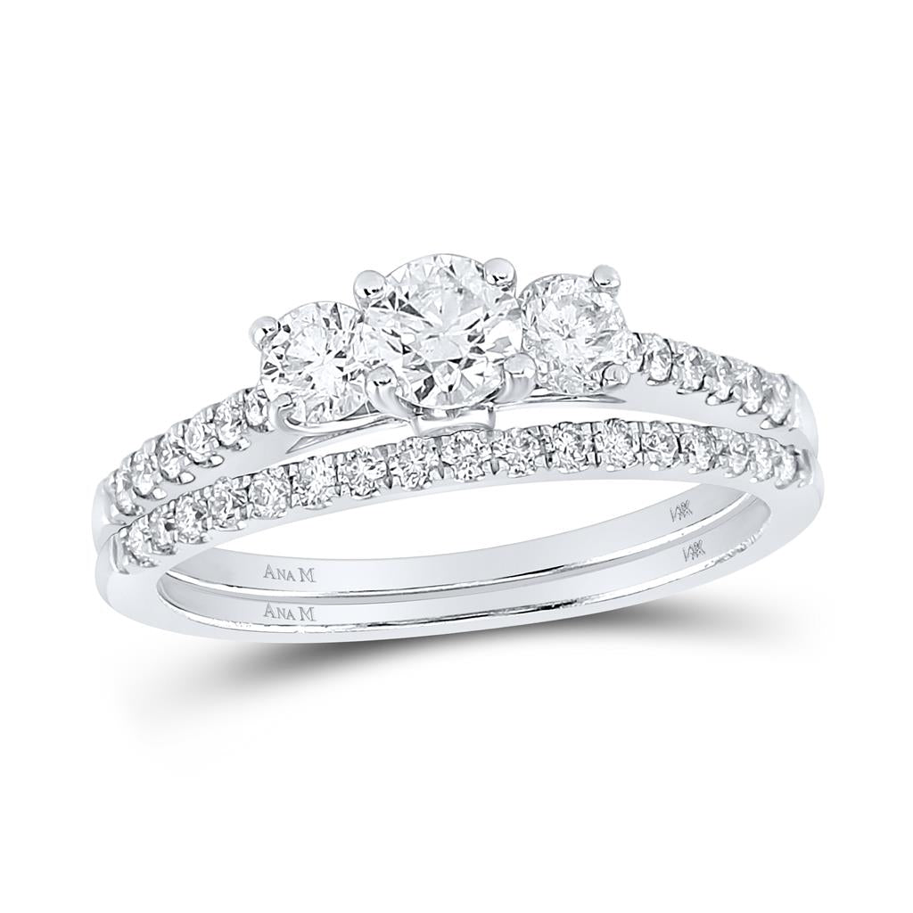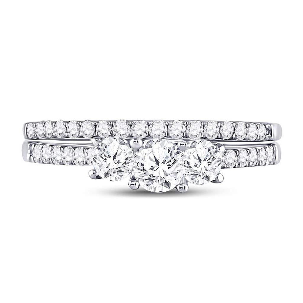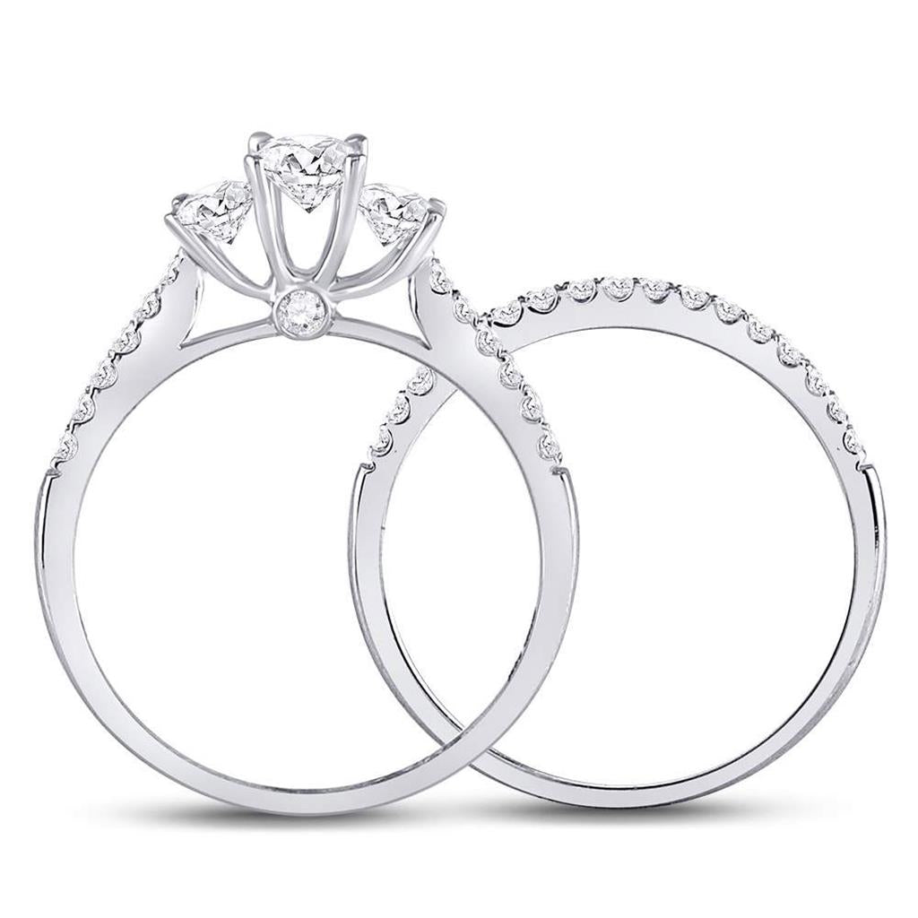14k White Gold Round Diamond 3-stone Bridal Wedding Ring Set 1 Cttw (Certified)