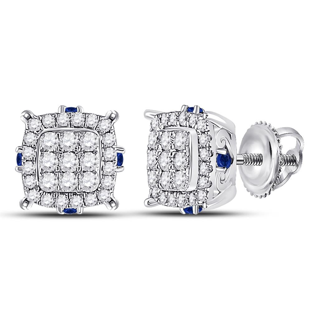 14k White Gold Round Diamond Blue Sapphire Square Earrings 3/4 Cttw