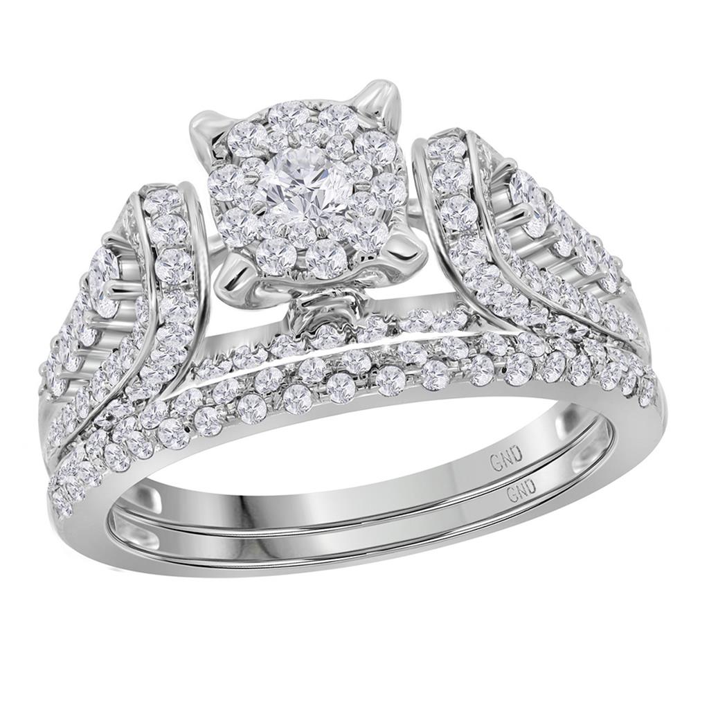 14k White Gold Round Diamond Bridal Wedding Ring Set 1-1/3 Cttw