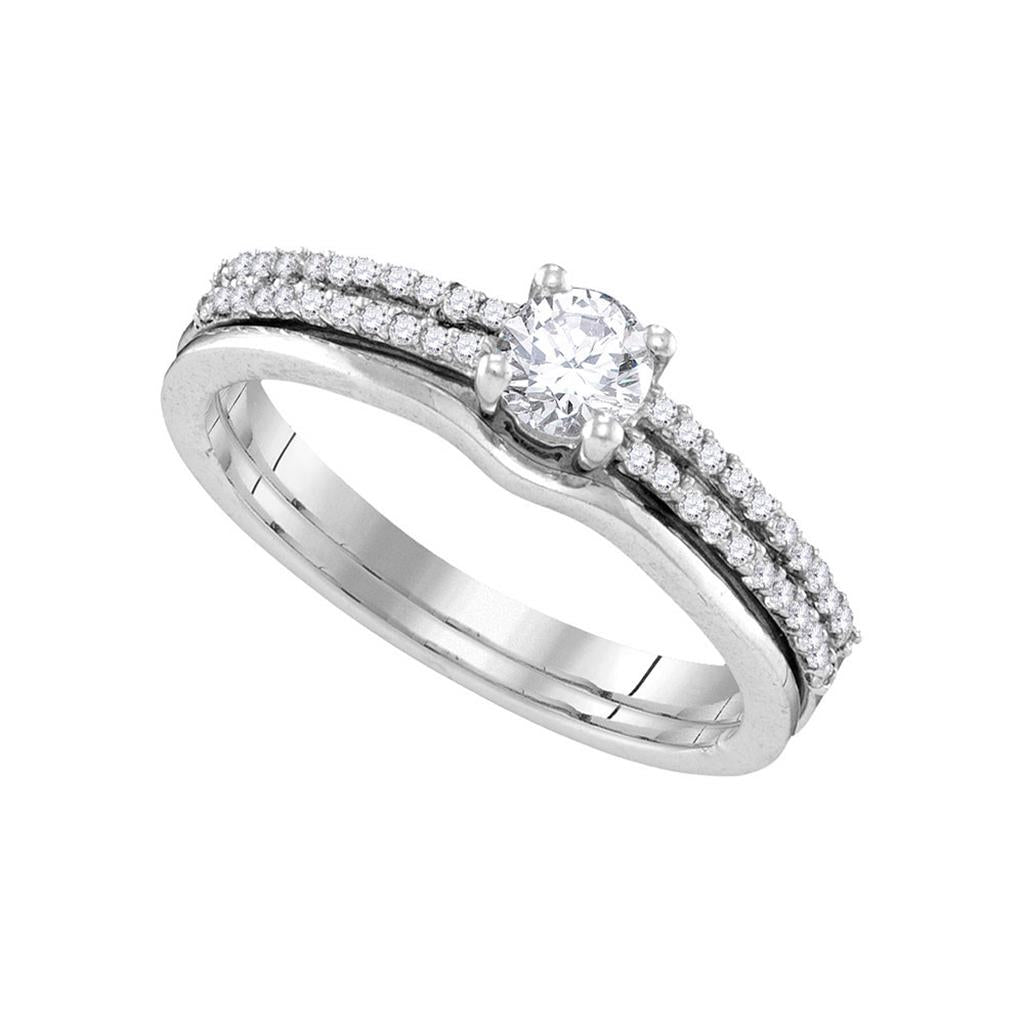 14k White Gold Round Diamond Bridal Wedding Ring Set 1/2 Cttw (Certified)