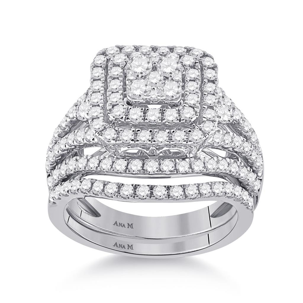 14k White Gold Round Diamond Bridal Wedding Ring Set 1-3/4 Cttw