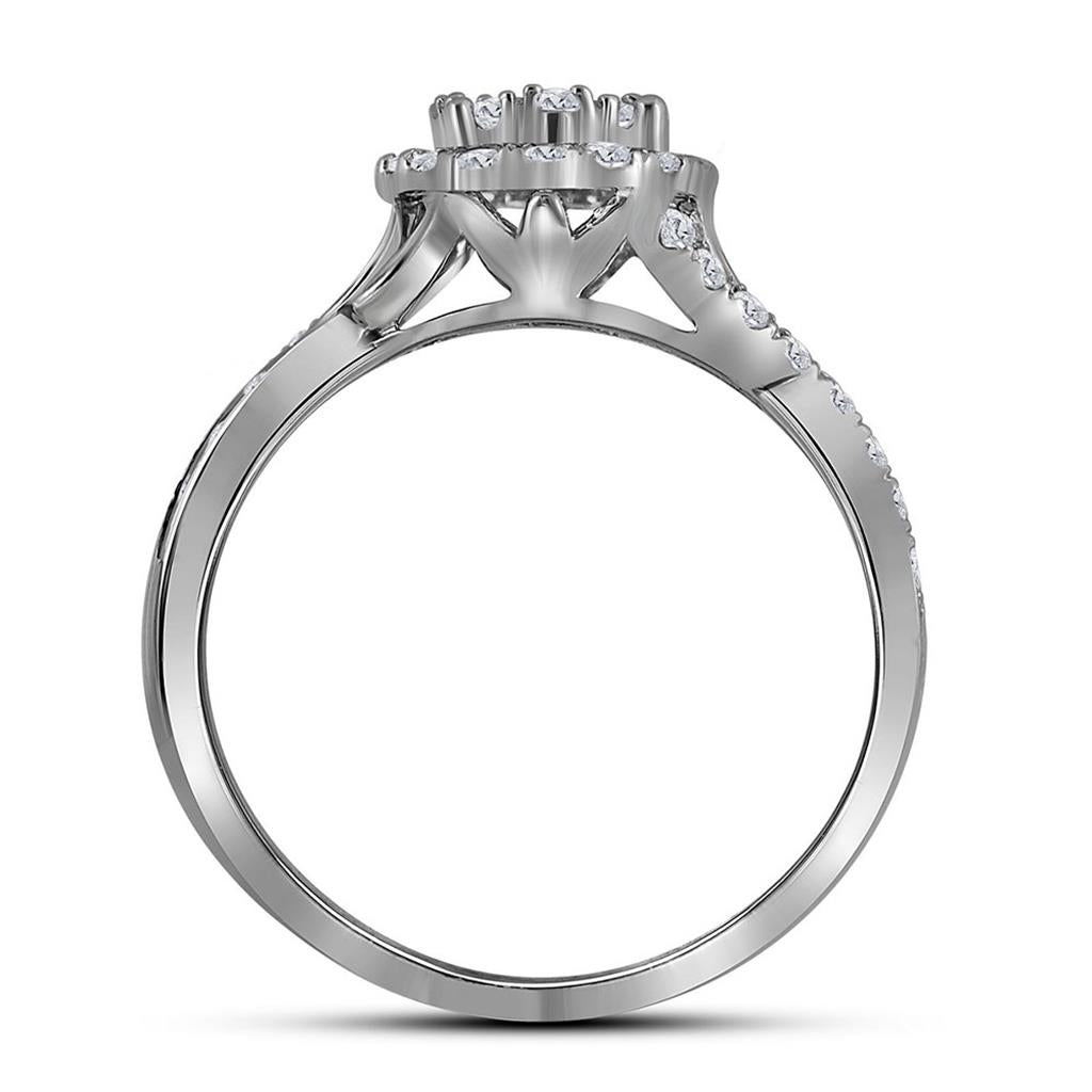 14k White Gold Round Diamond Bridal Wedding Ring Set 1 Cttw