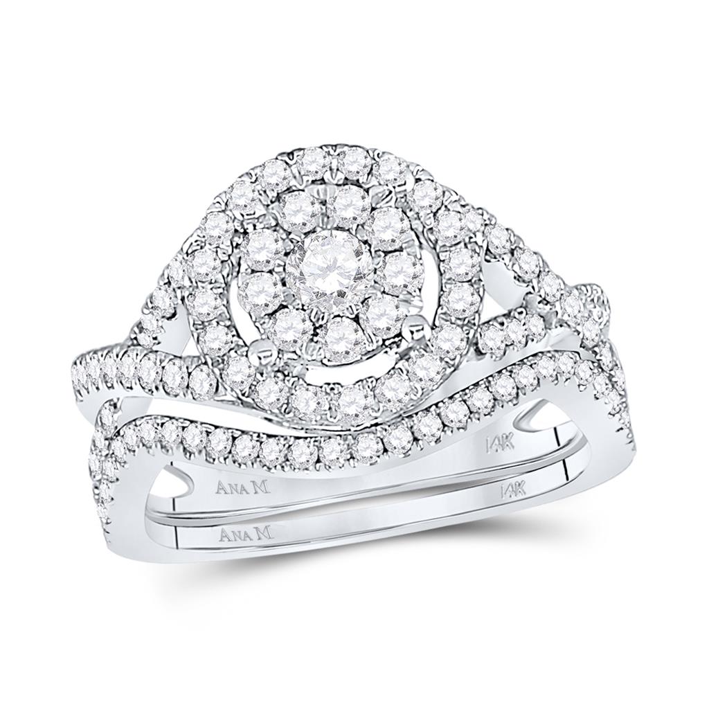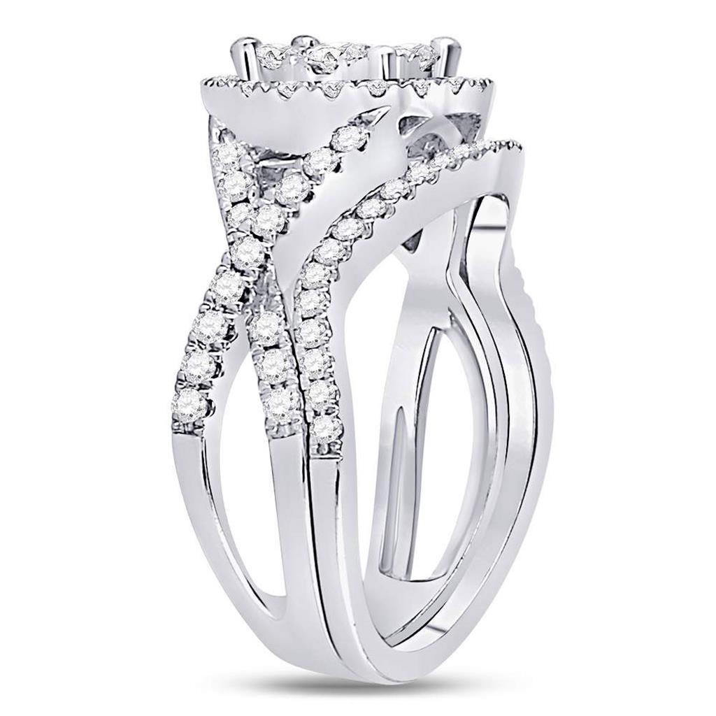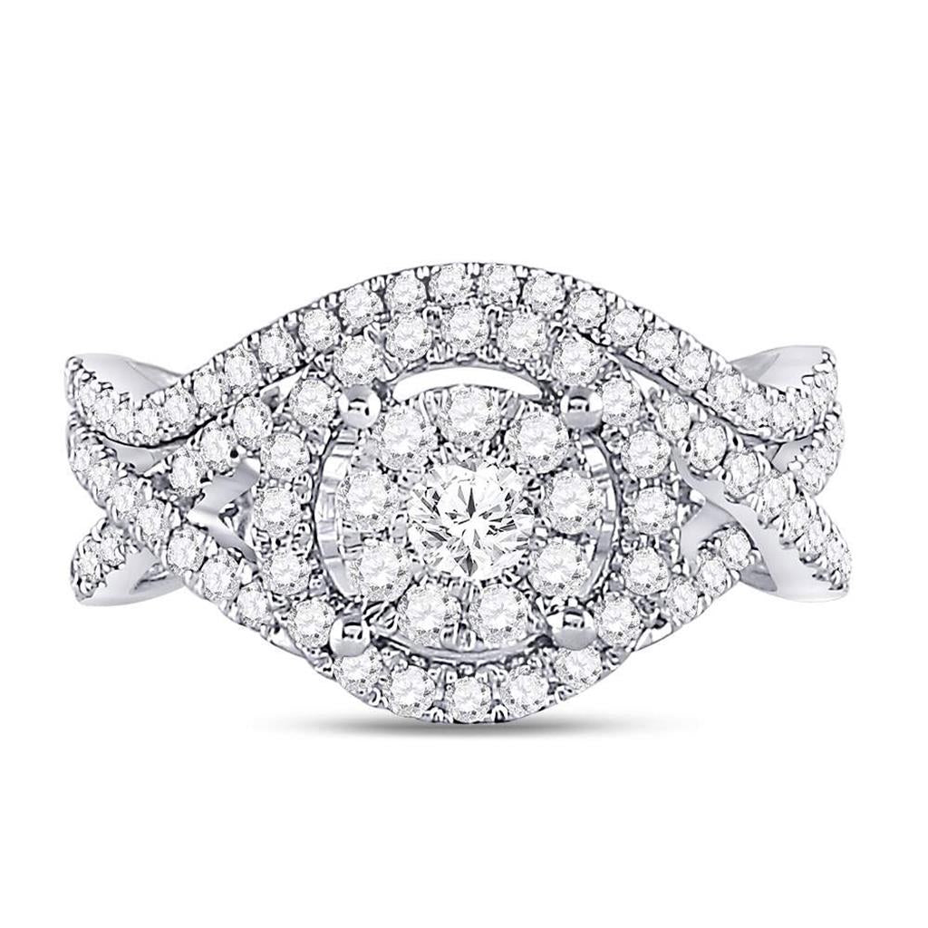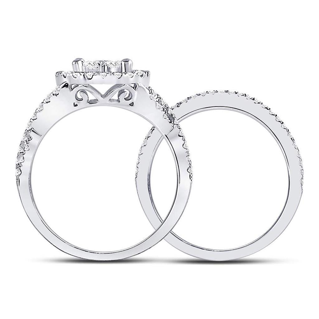 14k White Gold Round Diamond Bridal Wedding Ring Set 1 Cttw