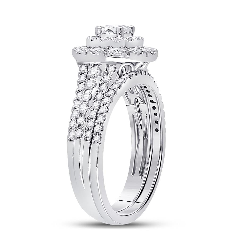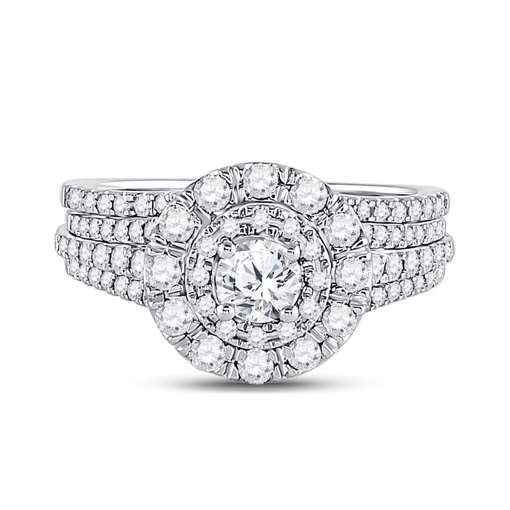 14k White Gold Round Diamond Bridal Wedding Ring Set 1 Cttw (Certified)