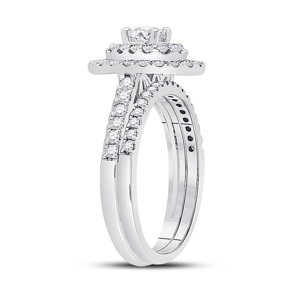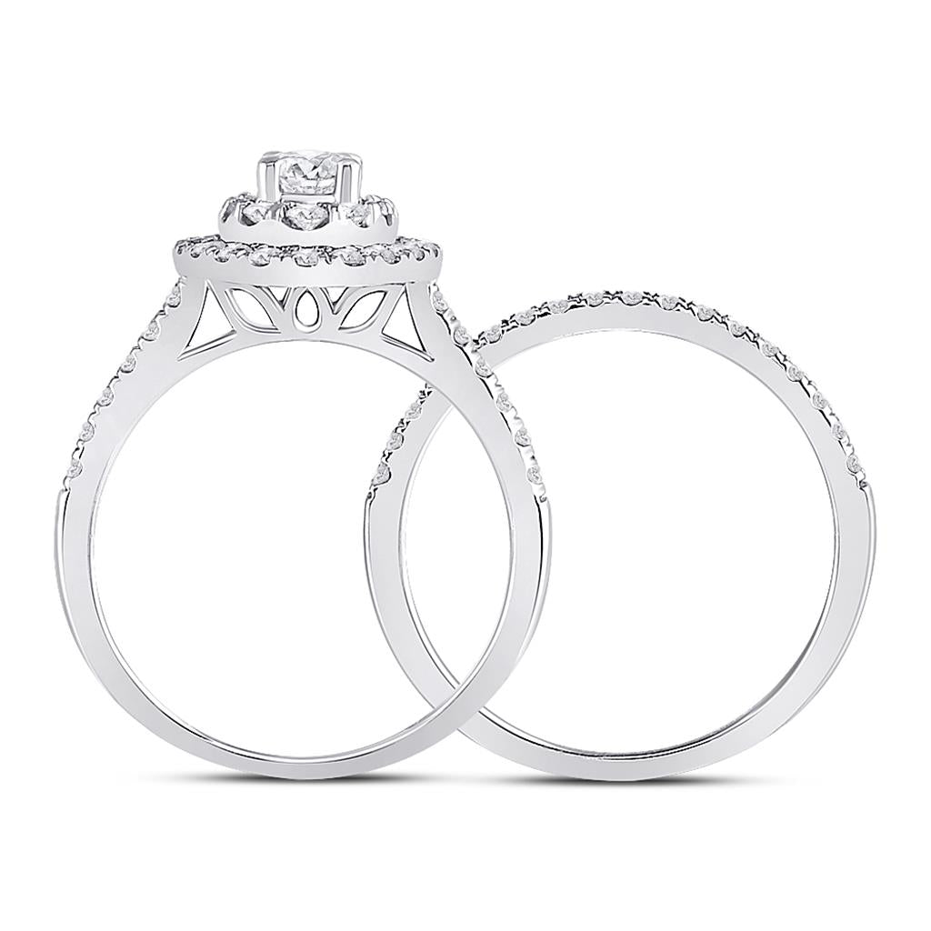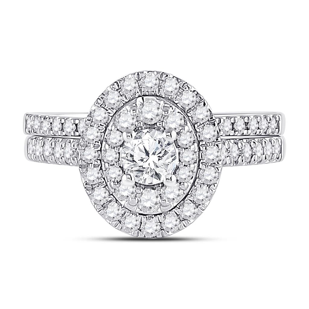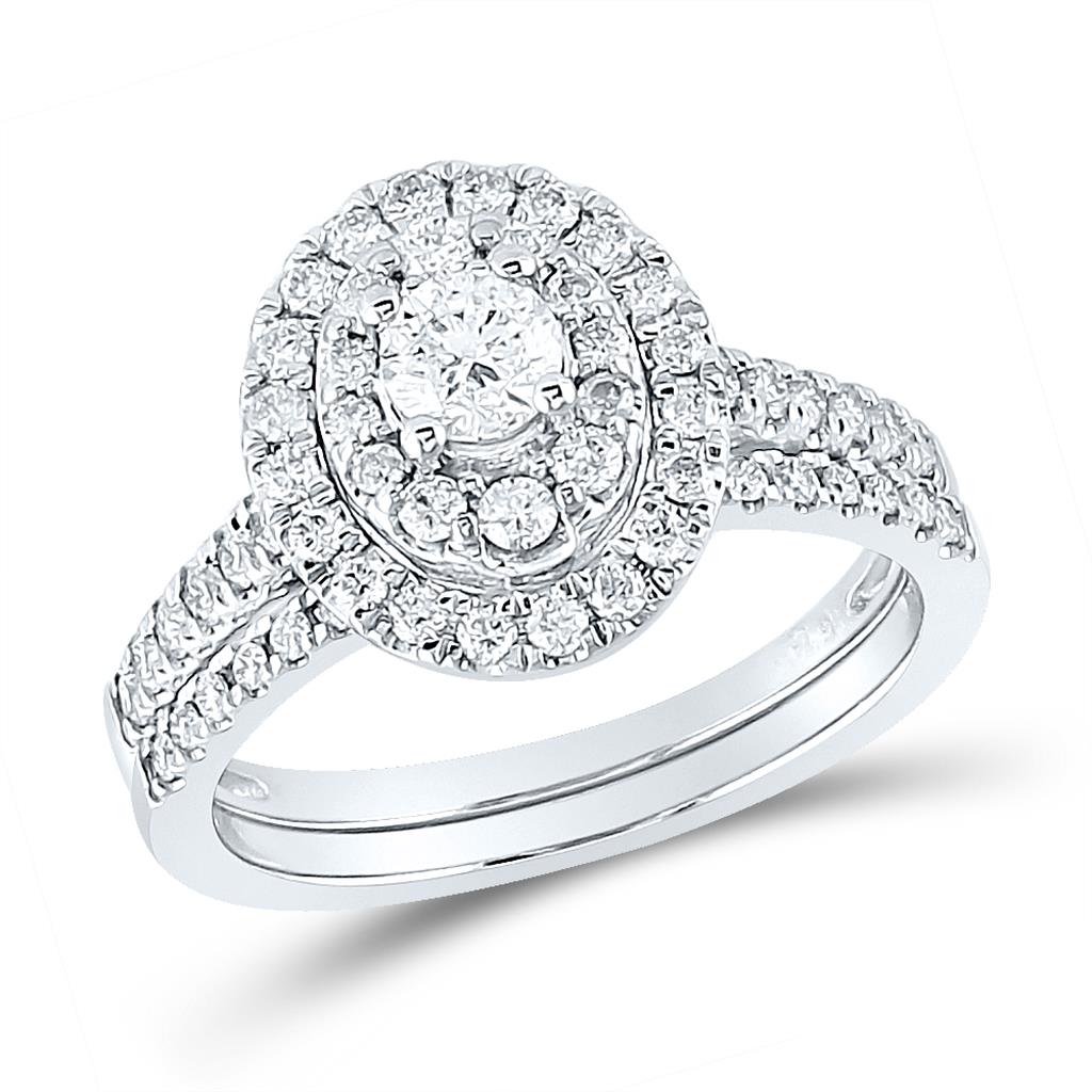 14k White Gold Round Diamond Bridal Wedding Ring Set 1 Cttw (Certified)