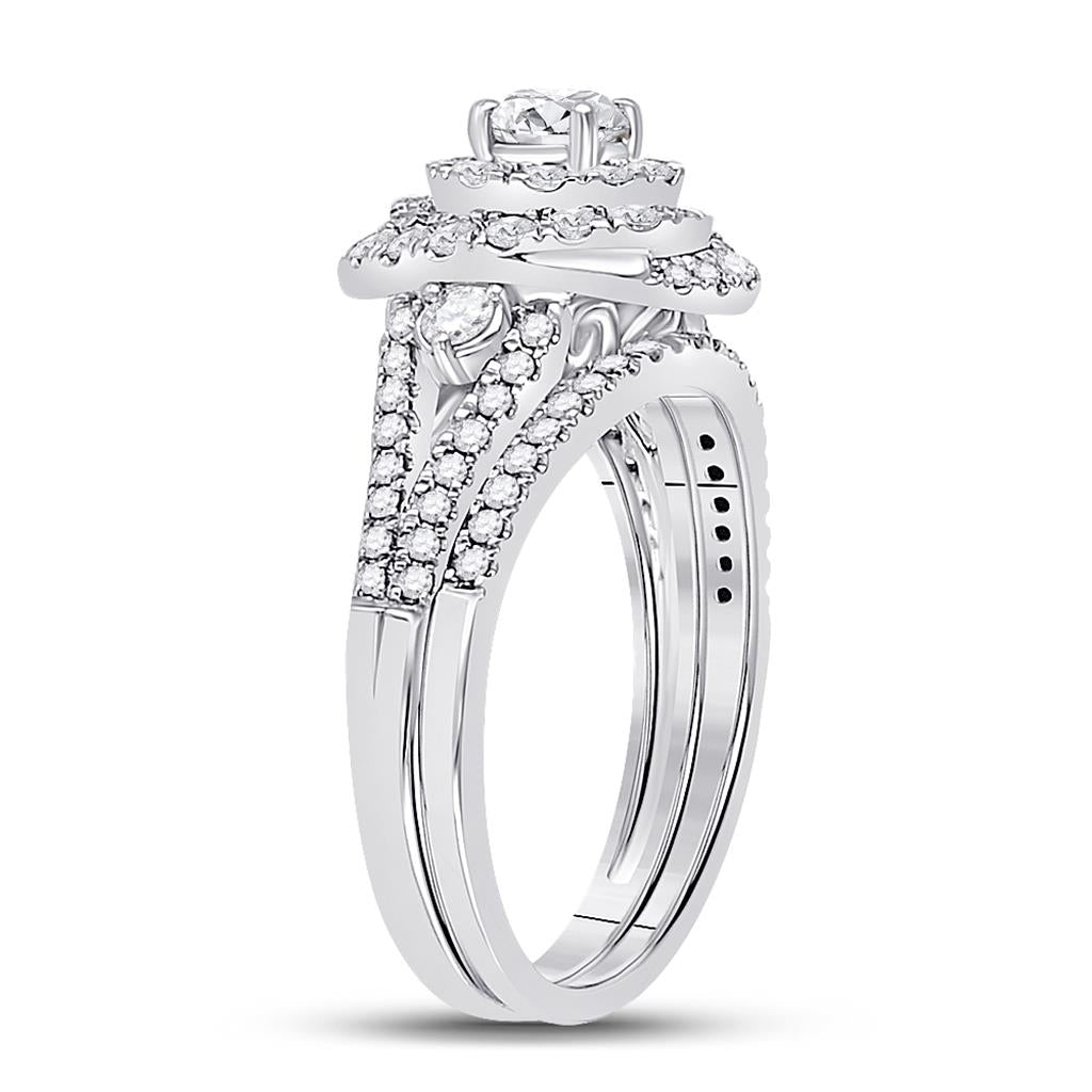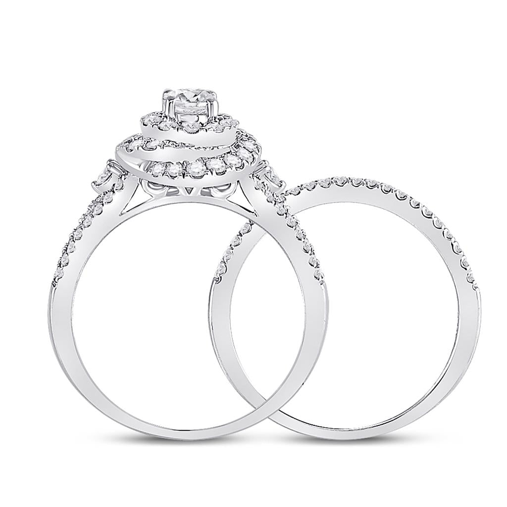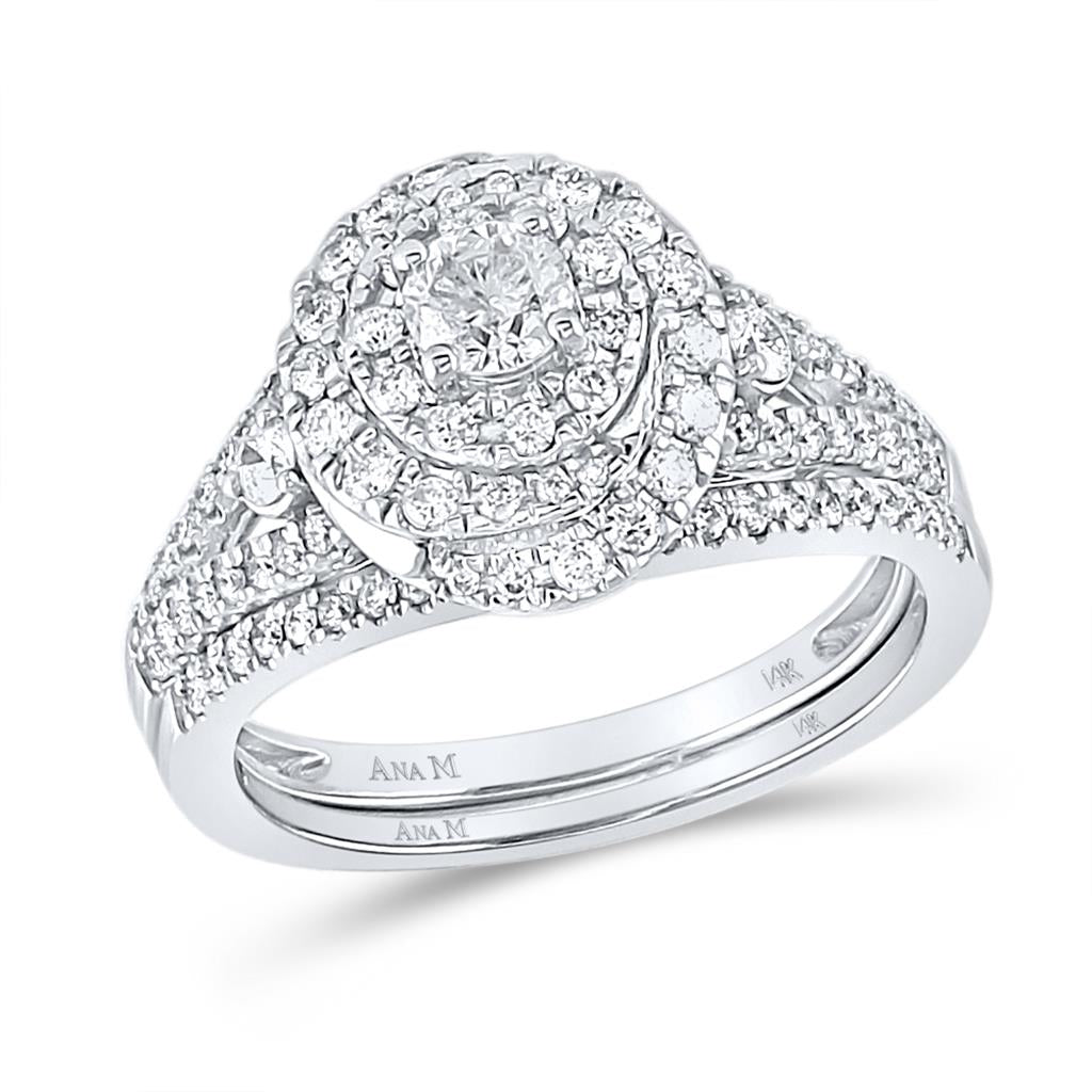 14k White Gold Round Diamond Bridal Wedding Ring Set 1 Cttw (Certified)