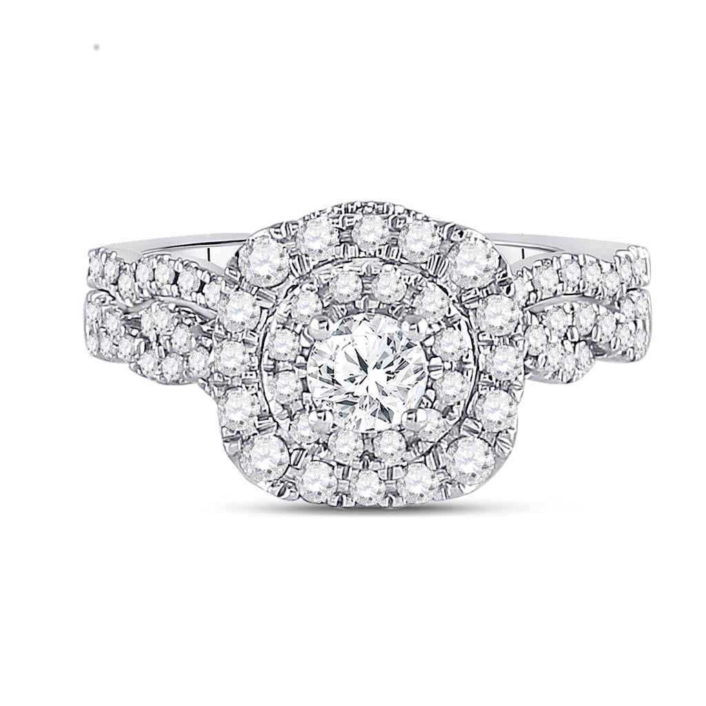14k White Gold Round Diamond Bridal Wedding Ring Set 1 Cttw (Certified)