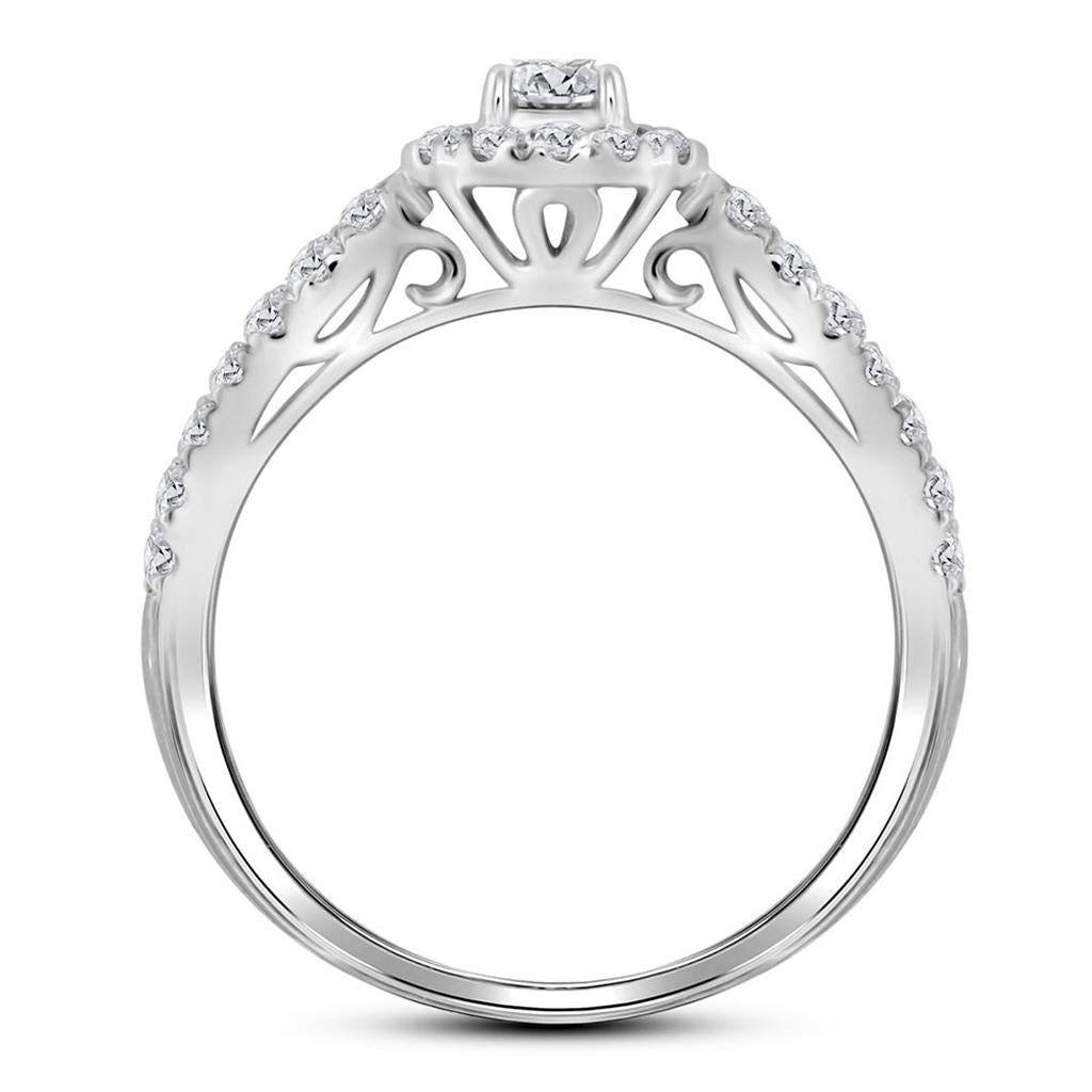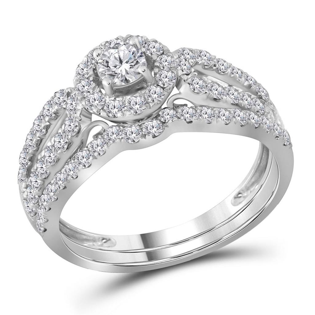 14k White Gold Round Diamond Bridal Wedding Ring Set 1 Cttw (Certified)