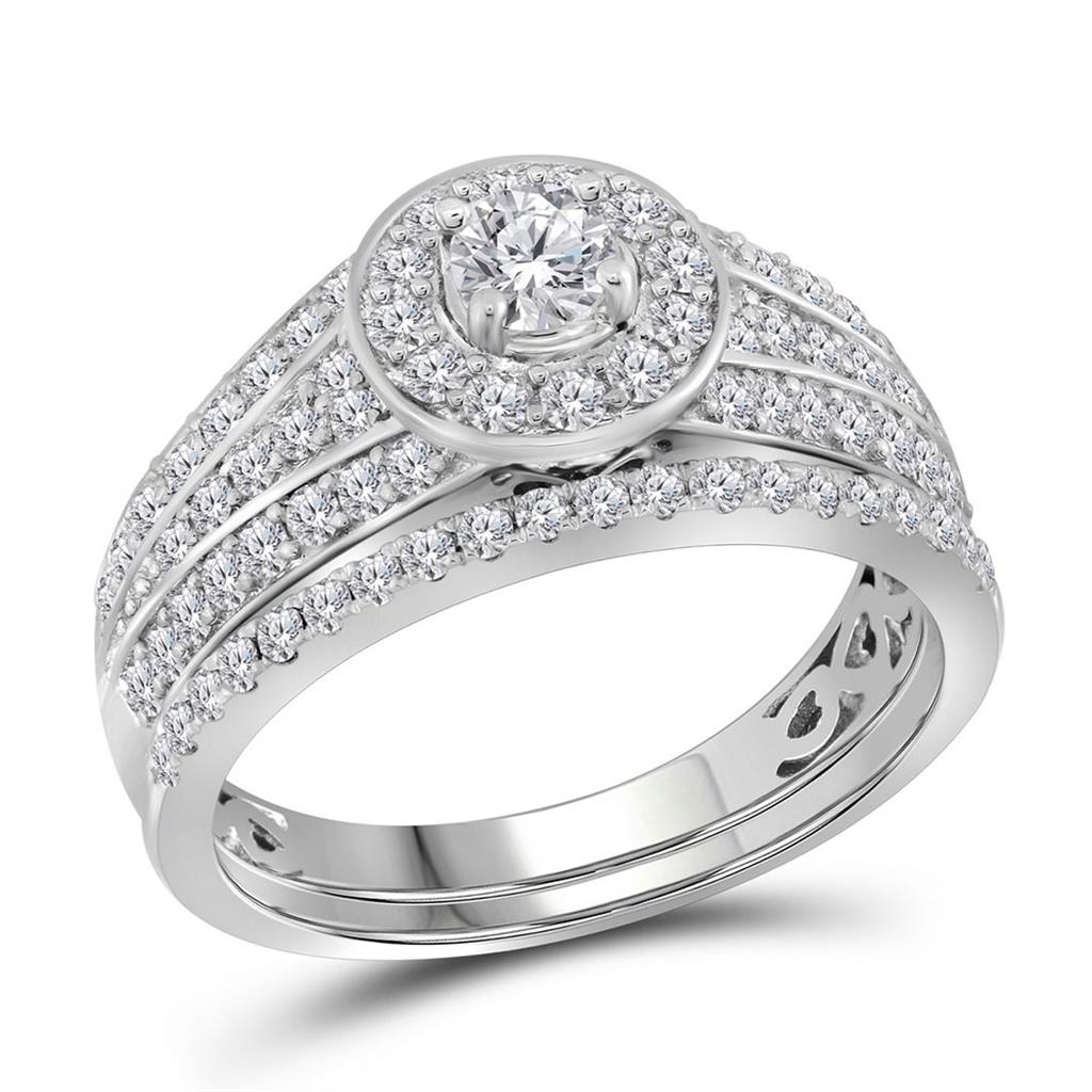 14k White Gold Round Diamond Bridal Wedding Ring Set 1 Cttw (Certified)