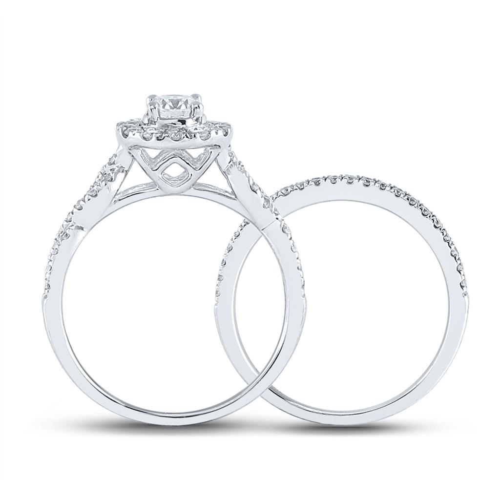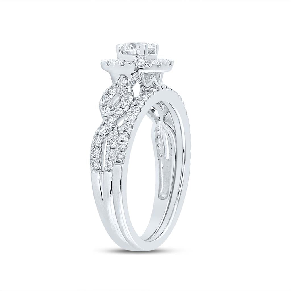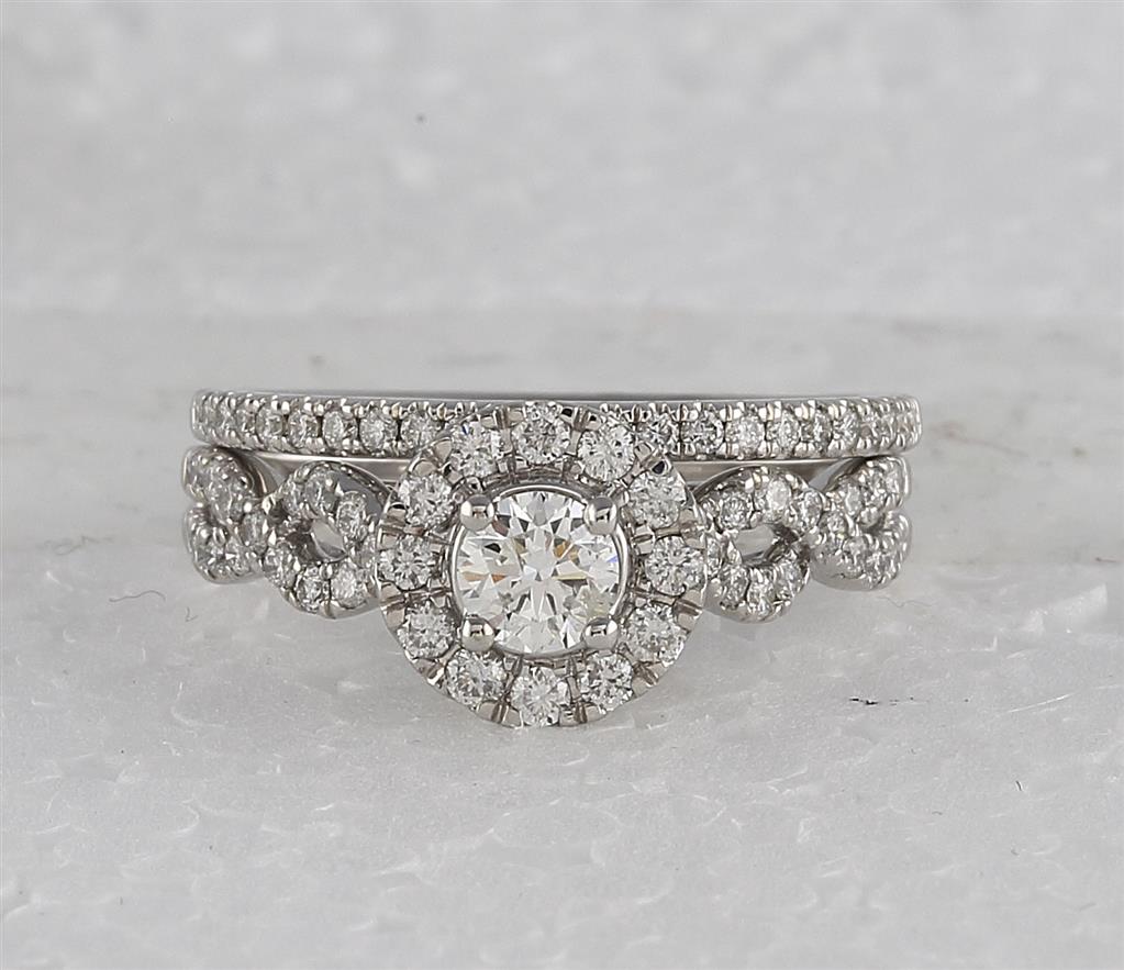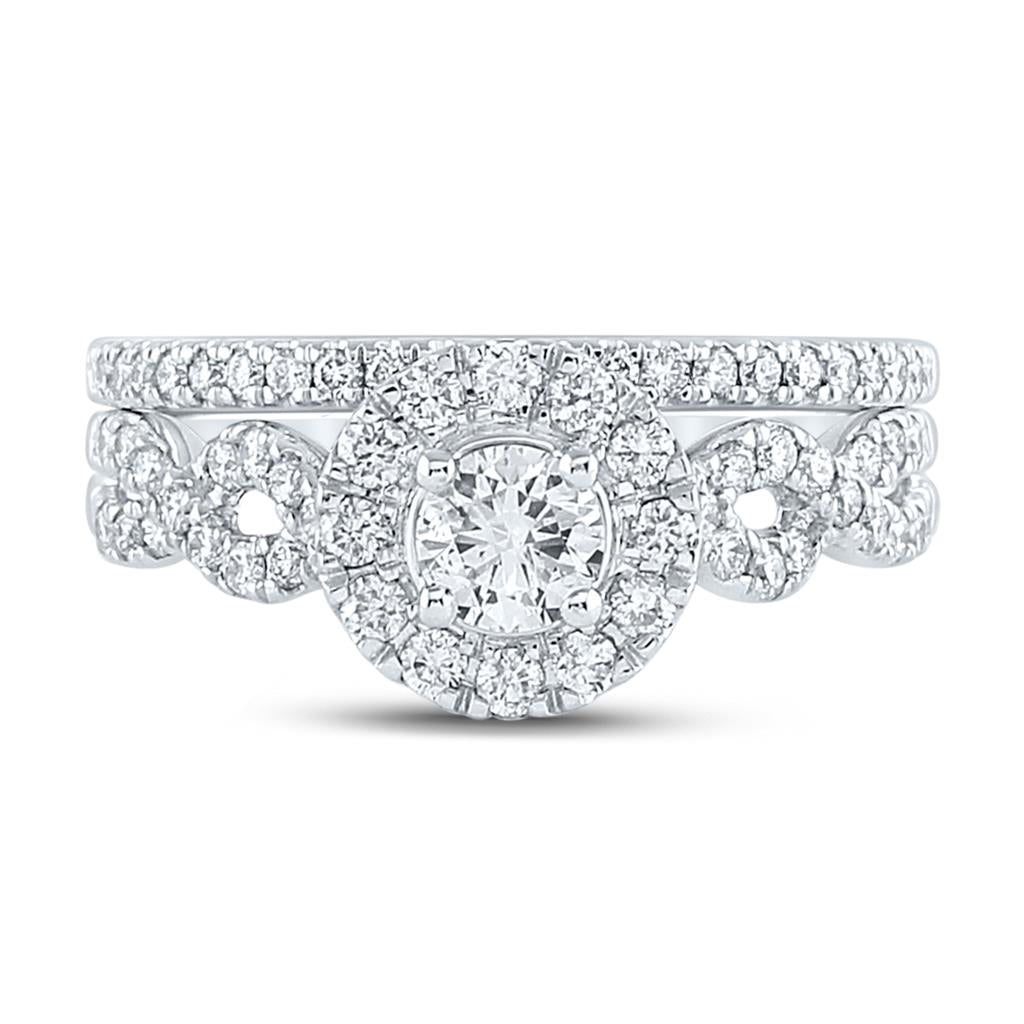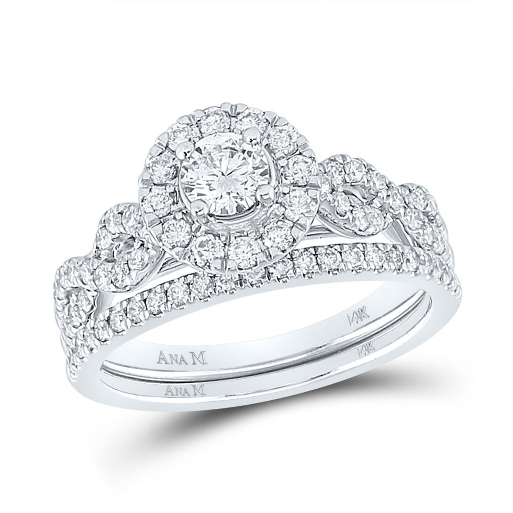14k White Gold Round Diamond Bridal Wedding Ring Set 1 Cttw (Certified)